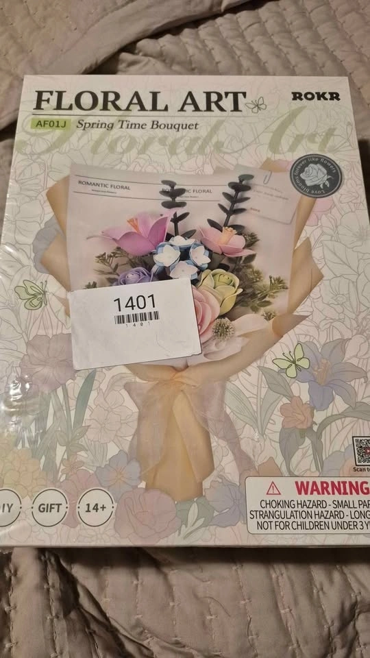 Creative DIY flower building kit. This ROKR Floral Art Spring Time Bouquet is a fun project. It has 6 different flowers and accessories to build. Assembled size is 450x320x420mm. Made with plastic and paper. Great for home decor or a cool gift. Recommended for ages 14+.