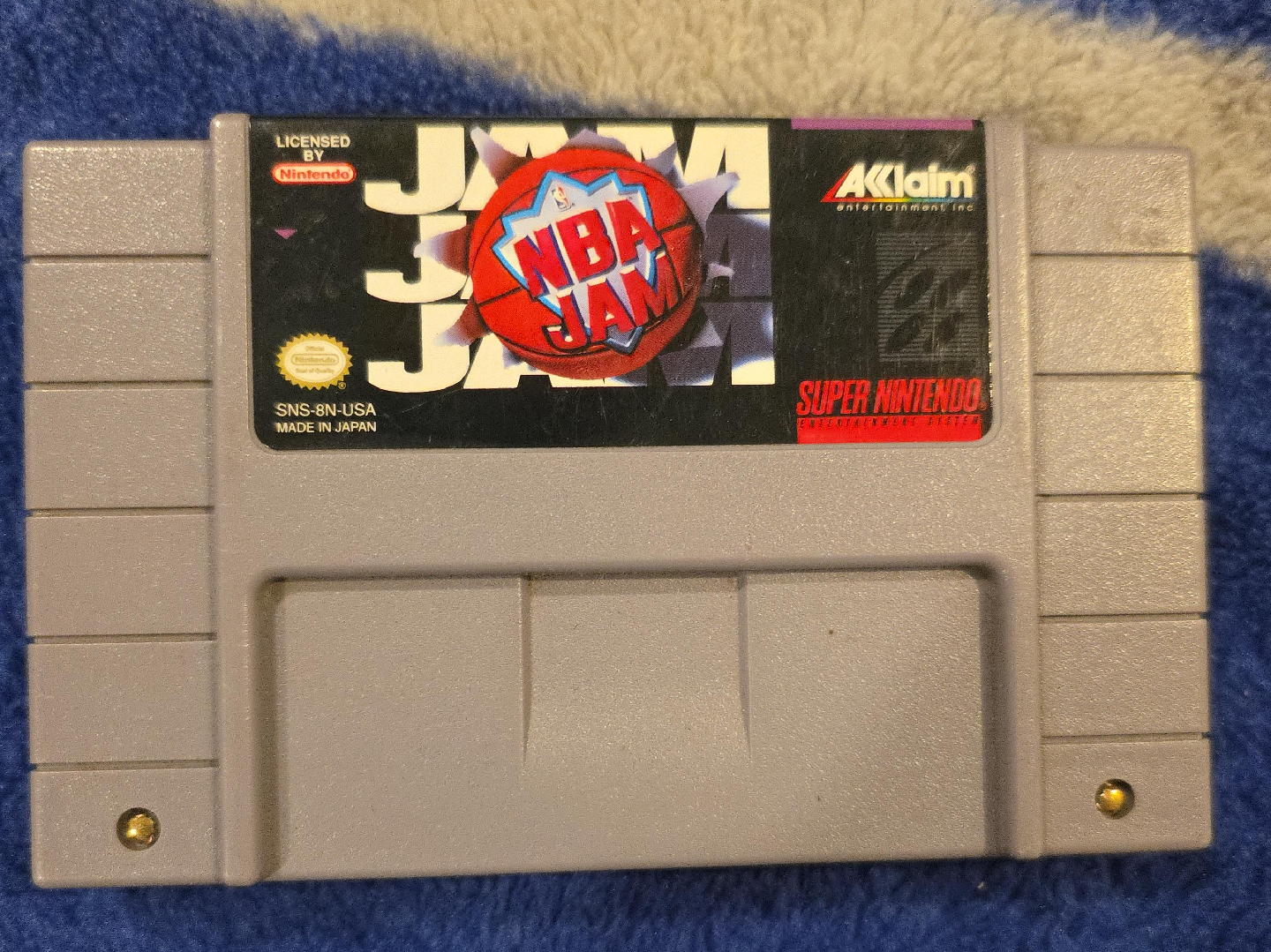 10Selling a used NBA Jam game cartridge for the Super Nintendo Entertainment System (SNES). A classic basketball game for retro gaming enthusiasts! Made in Japan