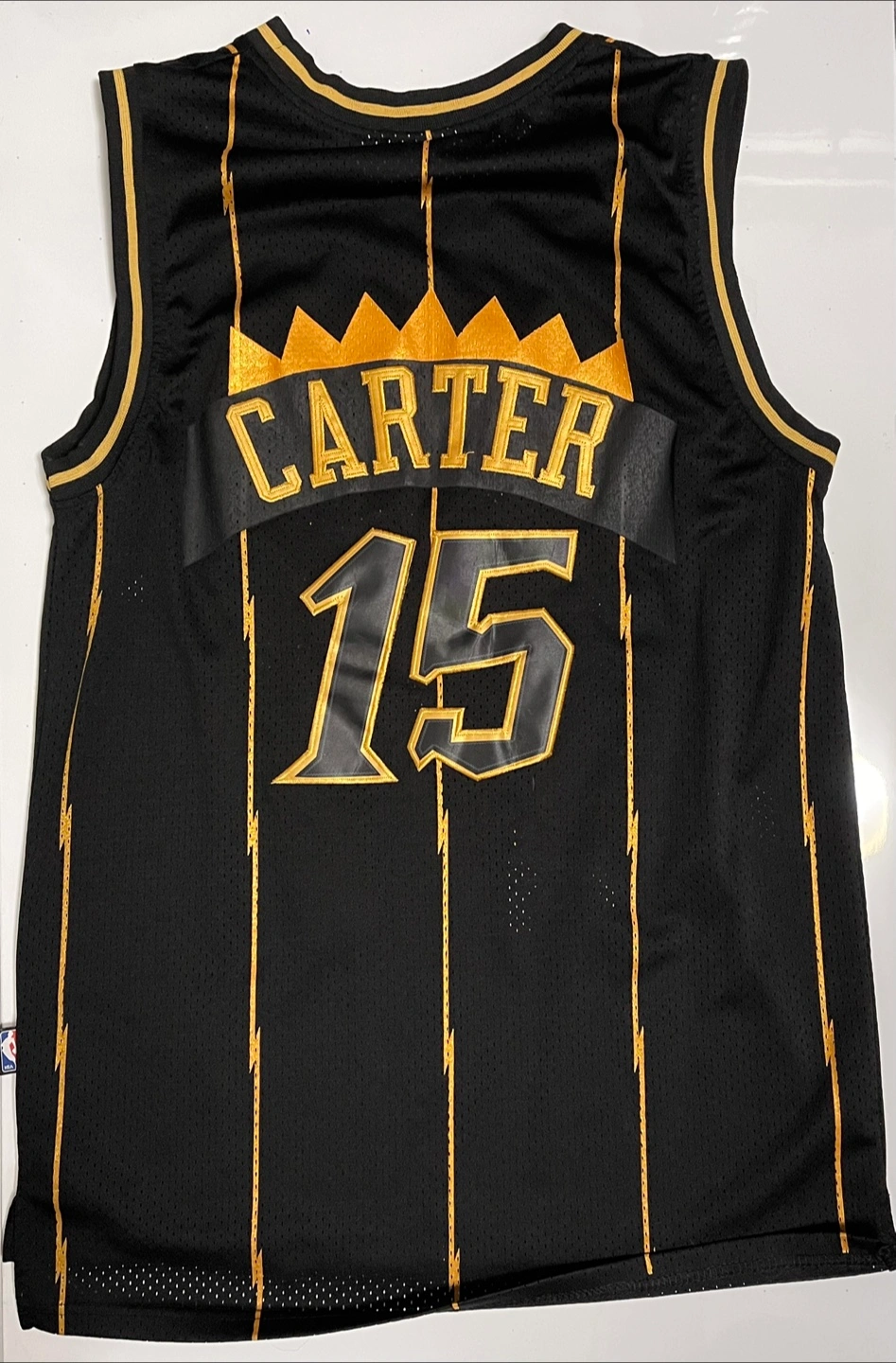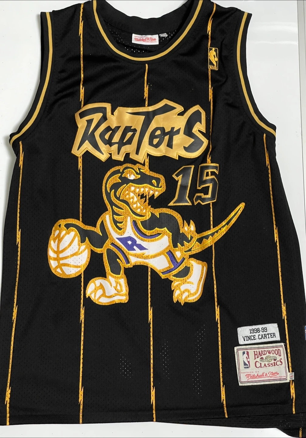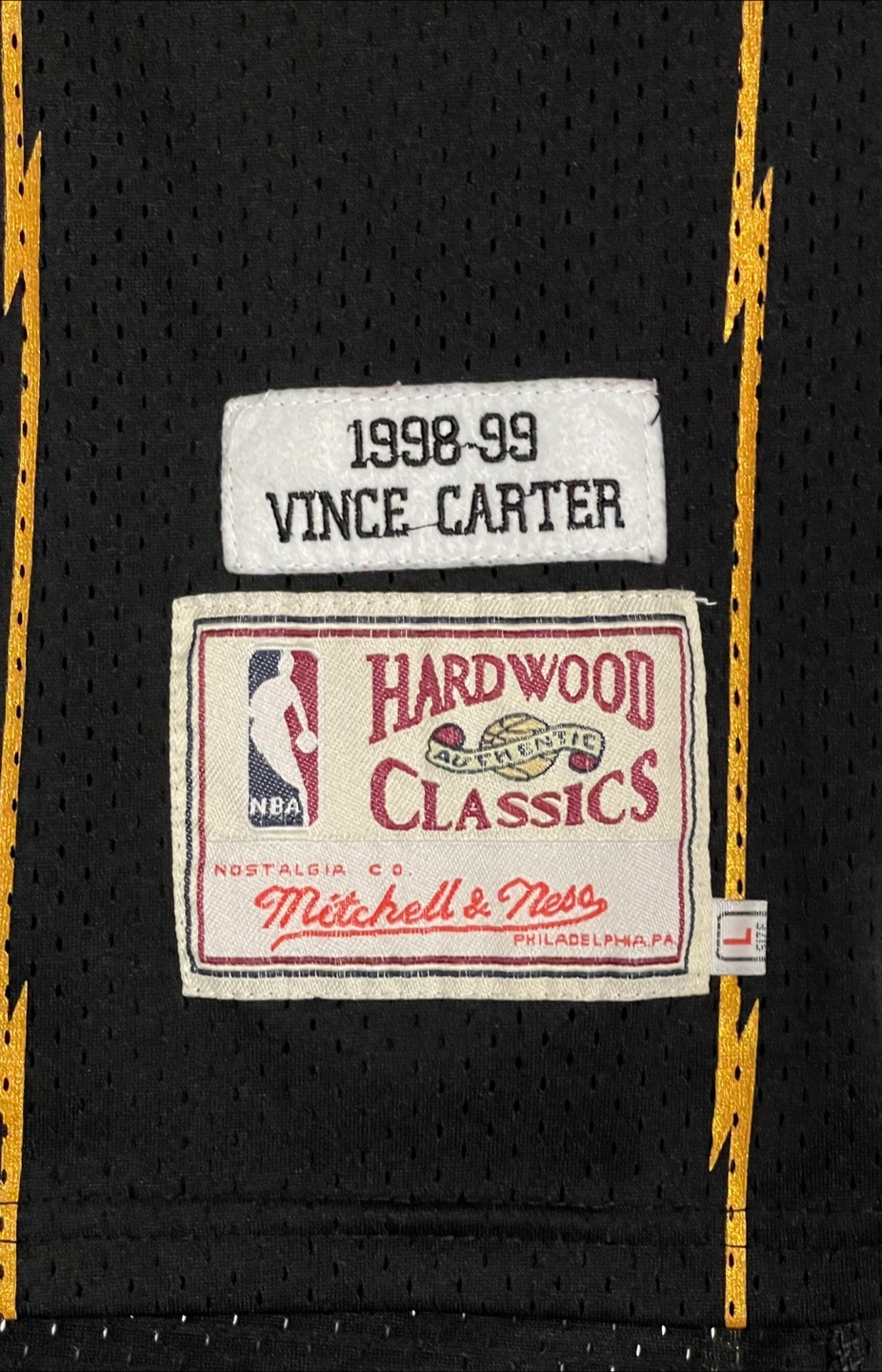 LIMITED EDITION - RARE COLORWAY For sale is a stunning 1998-99 Vince Carter Toronto Raptors jersey by Mitchell & Ness, part of their Hardwood Classics collection. ✅ Size: Large ✅ Condition: Worn ✅ Authentic Mitchell & Ness patch sewn on ✅ Bold Raptors logo and #15 on the front ✅ "CARTER" name & #15 on the back ✅ Unique black & gold alternate colorway – hard to find! ✅ Perfect for collectors, fans of Vinsanity, or anyone who loves vintage NBA gear