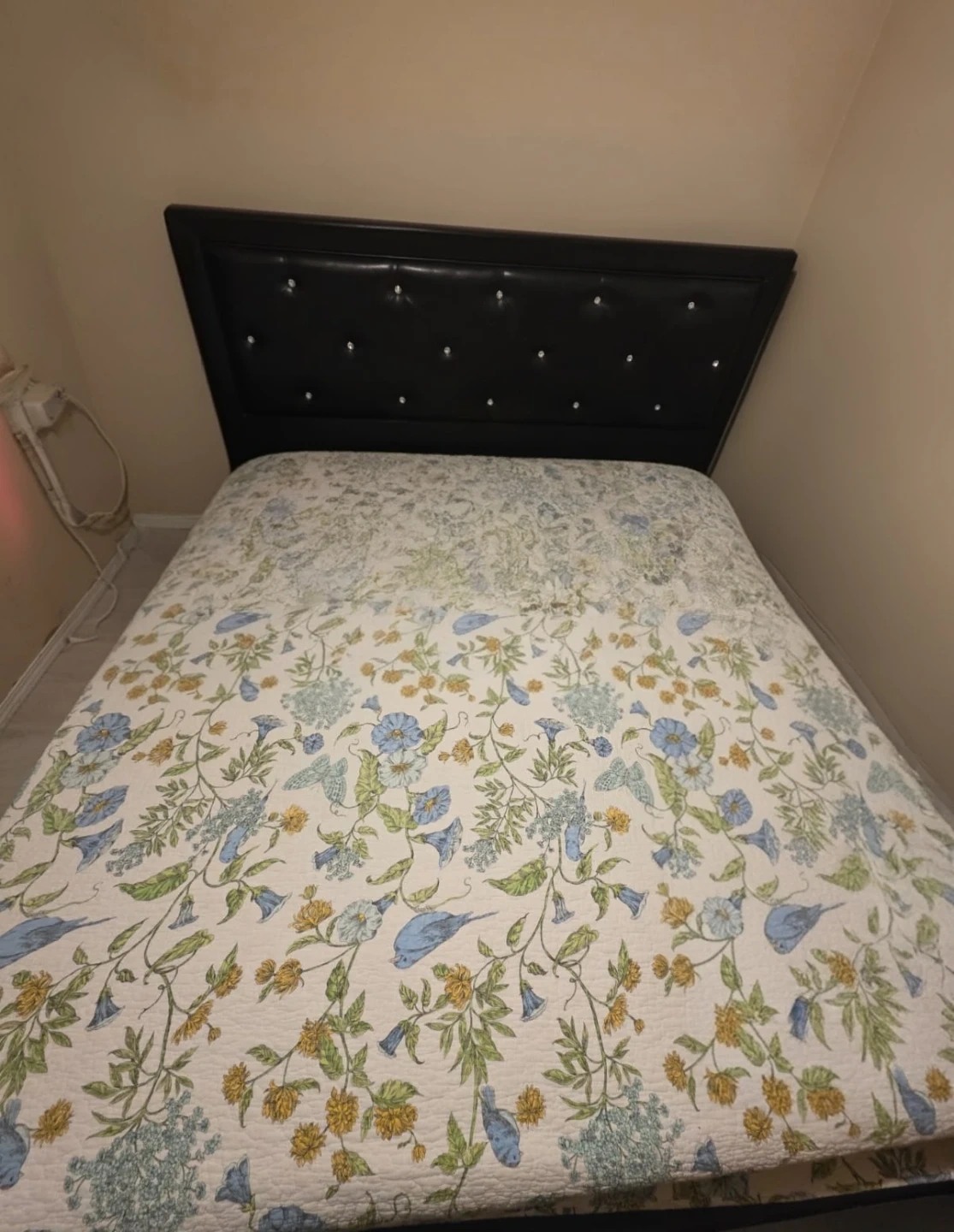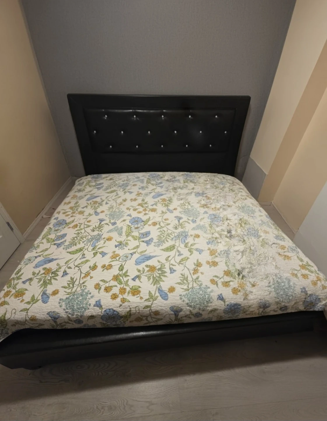 Selling a king-size bed frame complete with a headboard. The frame is sturdy and in good condition. The headboard adds a touch of elegance to any bedroom. Perfect for upgrading your sleeping space!