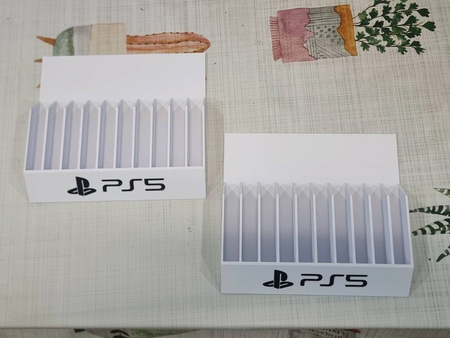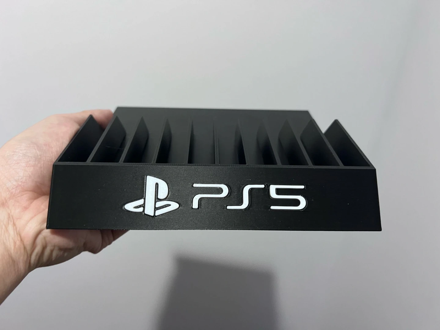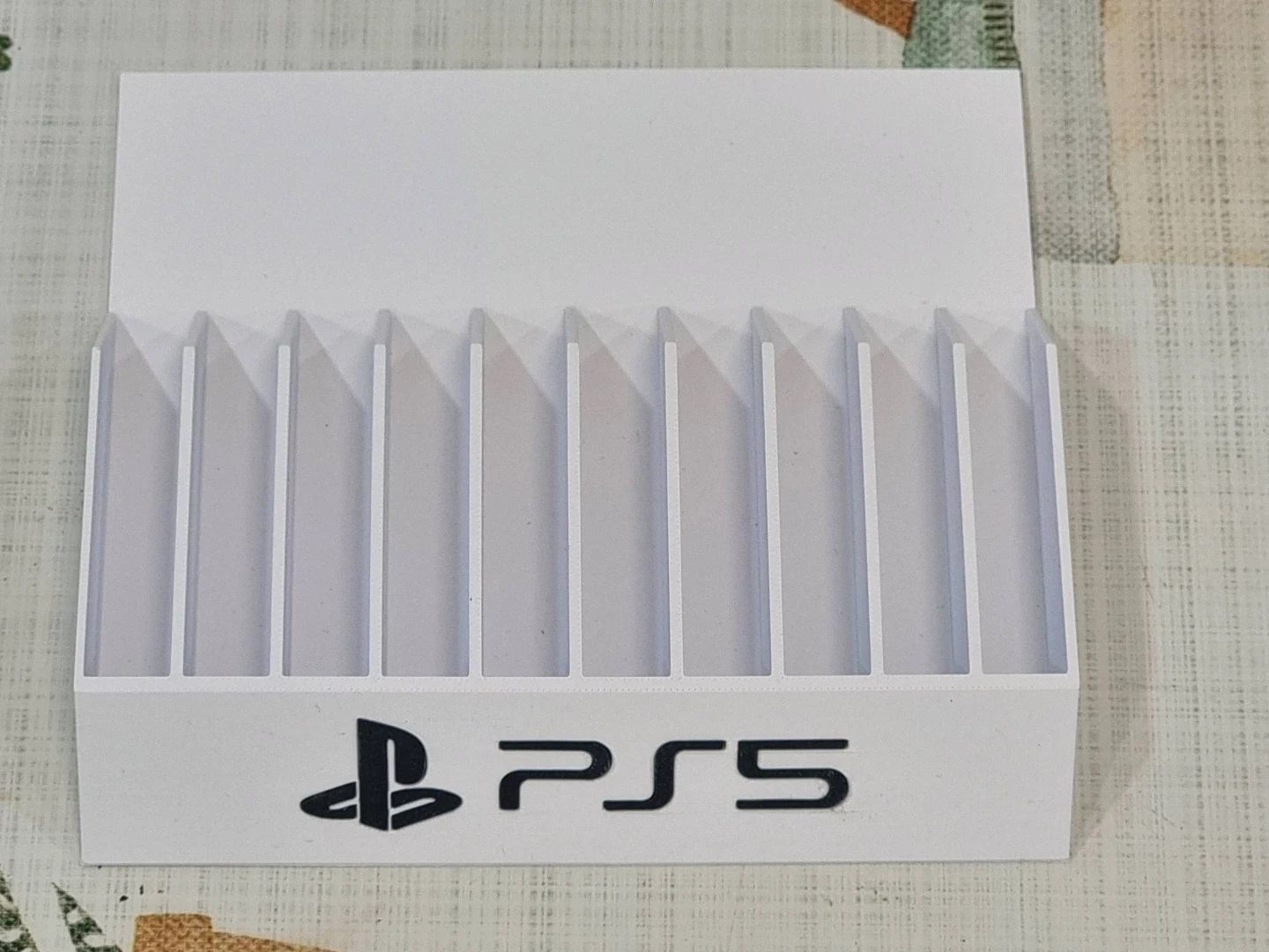 This white stand is designed to hold your PlayStation 5 disc drive. It features the PS5 logo. Keeps your disc drive upright and organized.