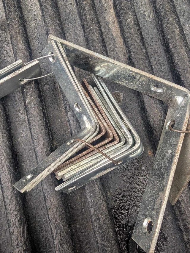 New and Used metal brackets in various sizes available for your projects. These brackets are sturdy and ready to be put to work. If the ad is up, then yes, the brackets are still available!