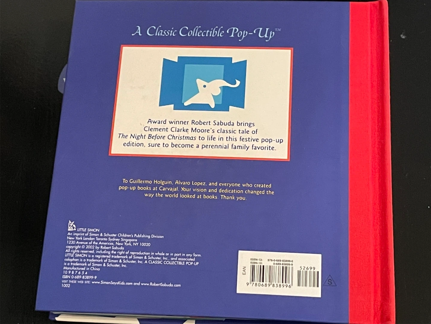 A classic collectible pop-up book featuring Clement Clarke Moore's story, 'The Night Before Christmas.' This festive edition is designed by Robert Sabuda, bringing the tale to life with intricate pop-up elements. It's a beautiful keepsake that would be cherished by families during the holiday season.