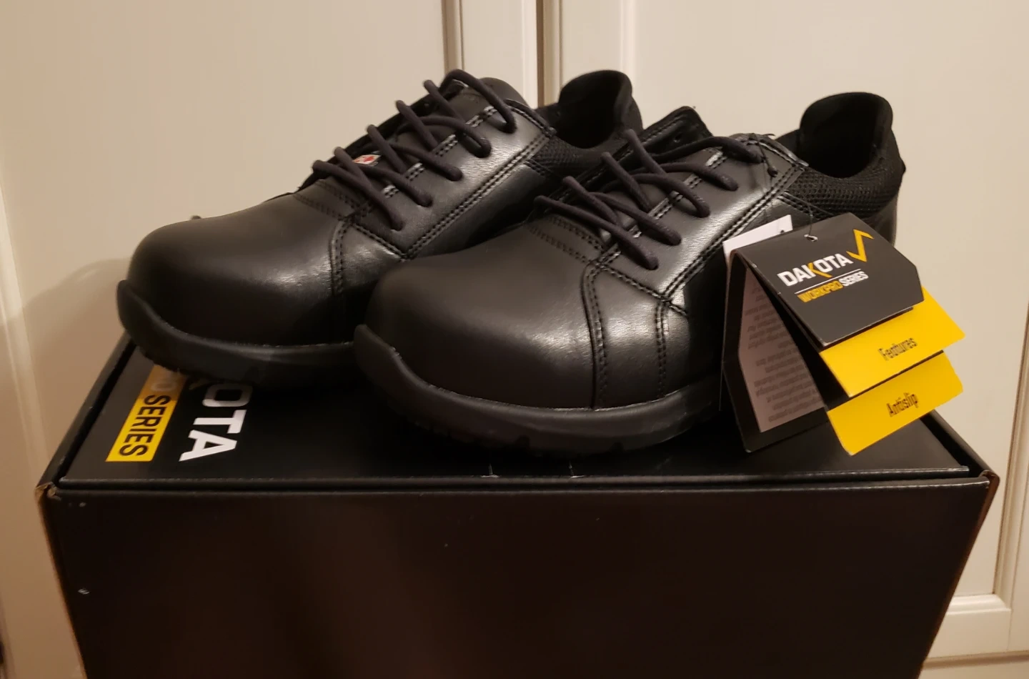 Dakota steel toe work shoes. They're designed for slip resistance on wet and dry surfaces. Great shoes for cooking or baking. Selling becsuse I needed smaller size. Brand new never worn only tried on.