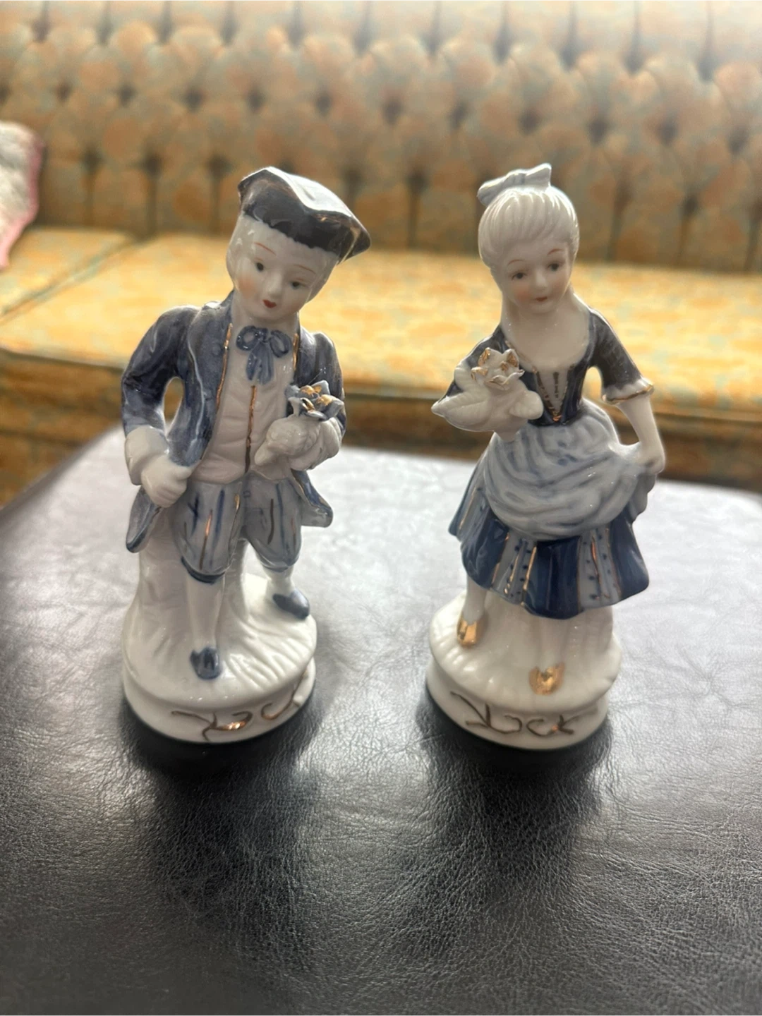 Selling a pair of vintage porcelain figurines. One is a boy and the other is a girl, both in traditional attire. They're in good condition and would make a lovely addition to any collection!