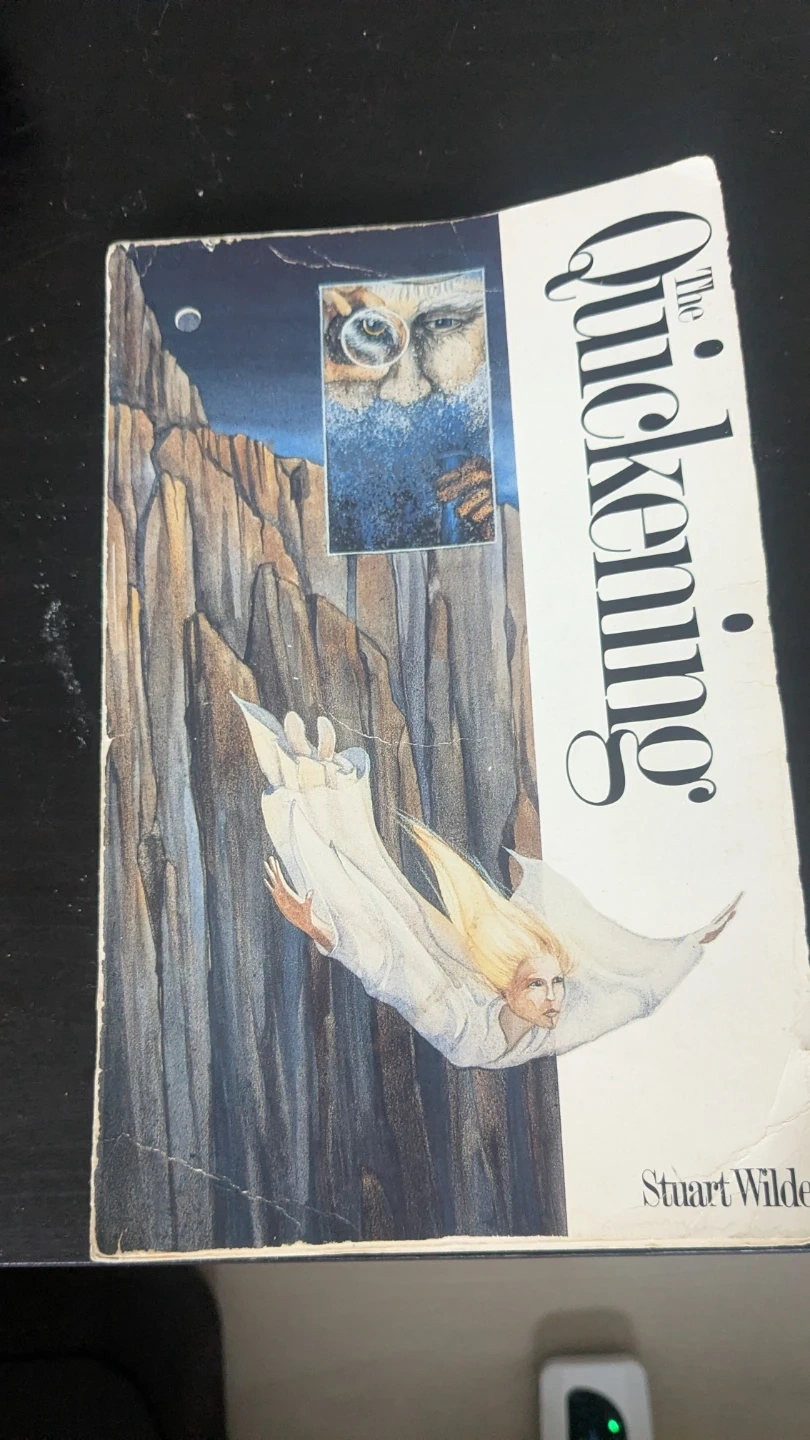 "The Quickening" by Stuart Wilde, the fourth in a quartet of books on self-empowerment. It discusses the power of the ancient warrior sages and teaches the reader etherical (life force) and psychological techniques for consolidating his or her energy for that final push for the peak within the Self.