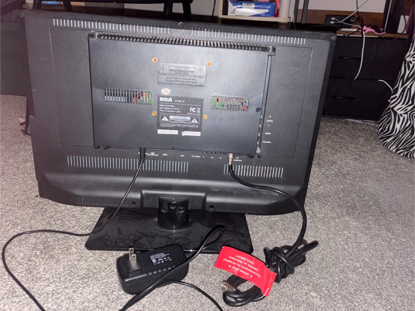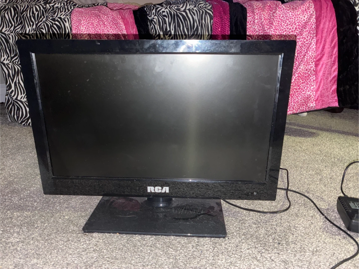 RCA 13-inch flat screen television. Includes power adapter and cable. Good for a small space or secondary monitor.