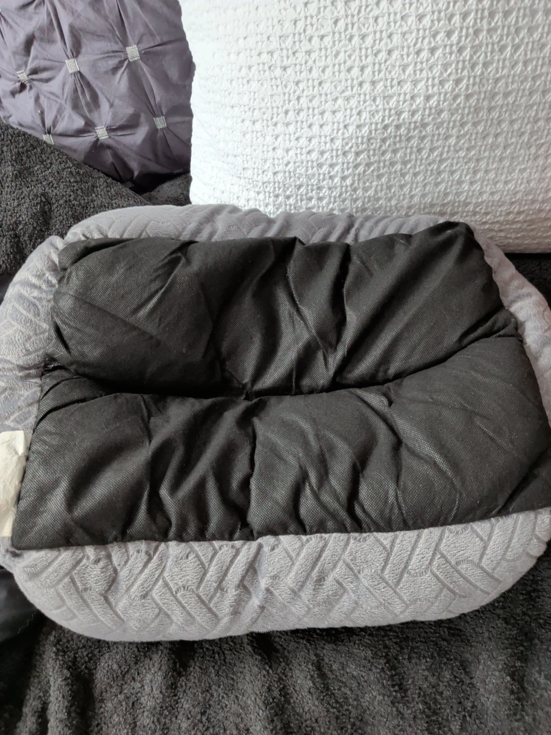Grey plush pet bed