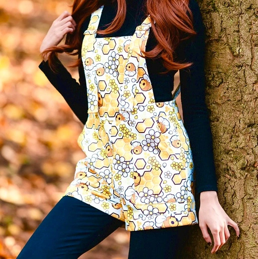 Honey Bee Print Shorts Overalls for Women