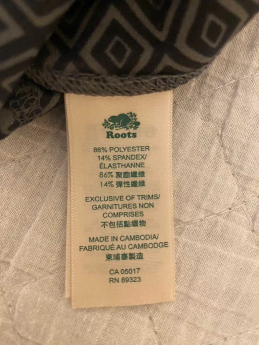 Roots leggings with a geometric pattern. Made with 86% polyester and 14% spandex. They're size XS/TP.