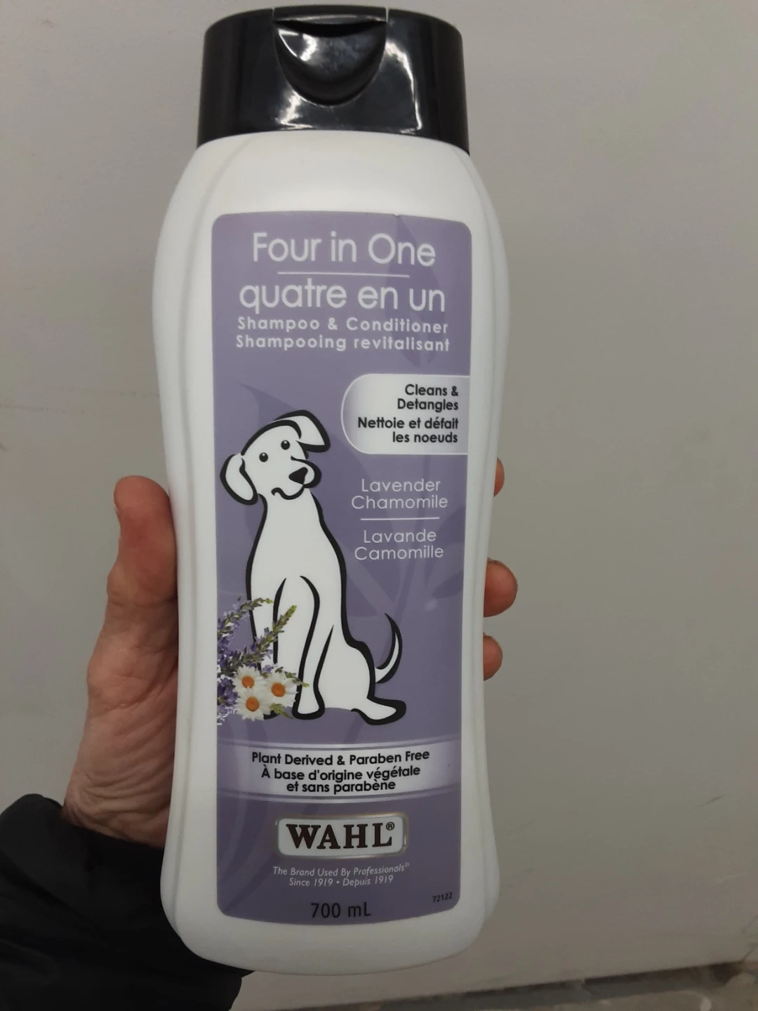 Wahl's Four in One shampoo and conditioner is formulated with gentle plant-based cleansers. It's designed to clean, condition, detangle, and moisturize your dog's fur. This formula is also paraben and alcohol-free, making it gentle for your pet.