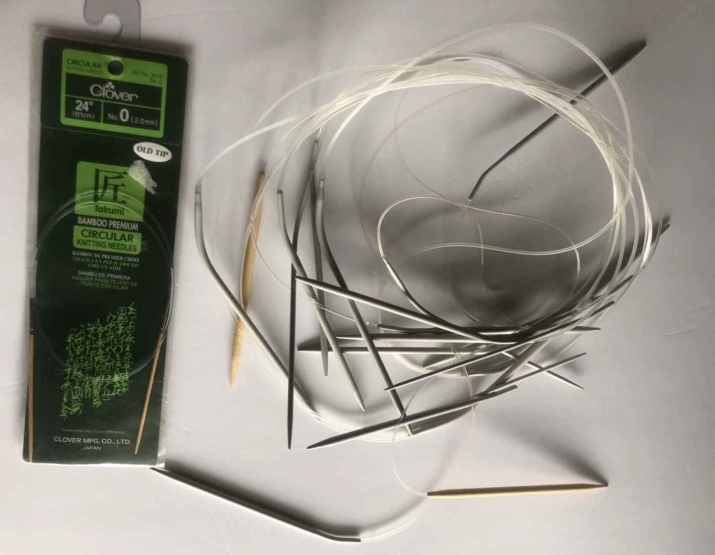 Clover Takumi circular knitting needles + multiple knitting needles.