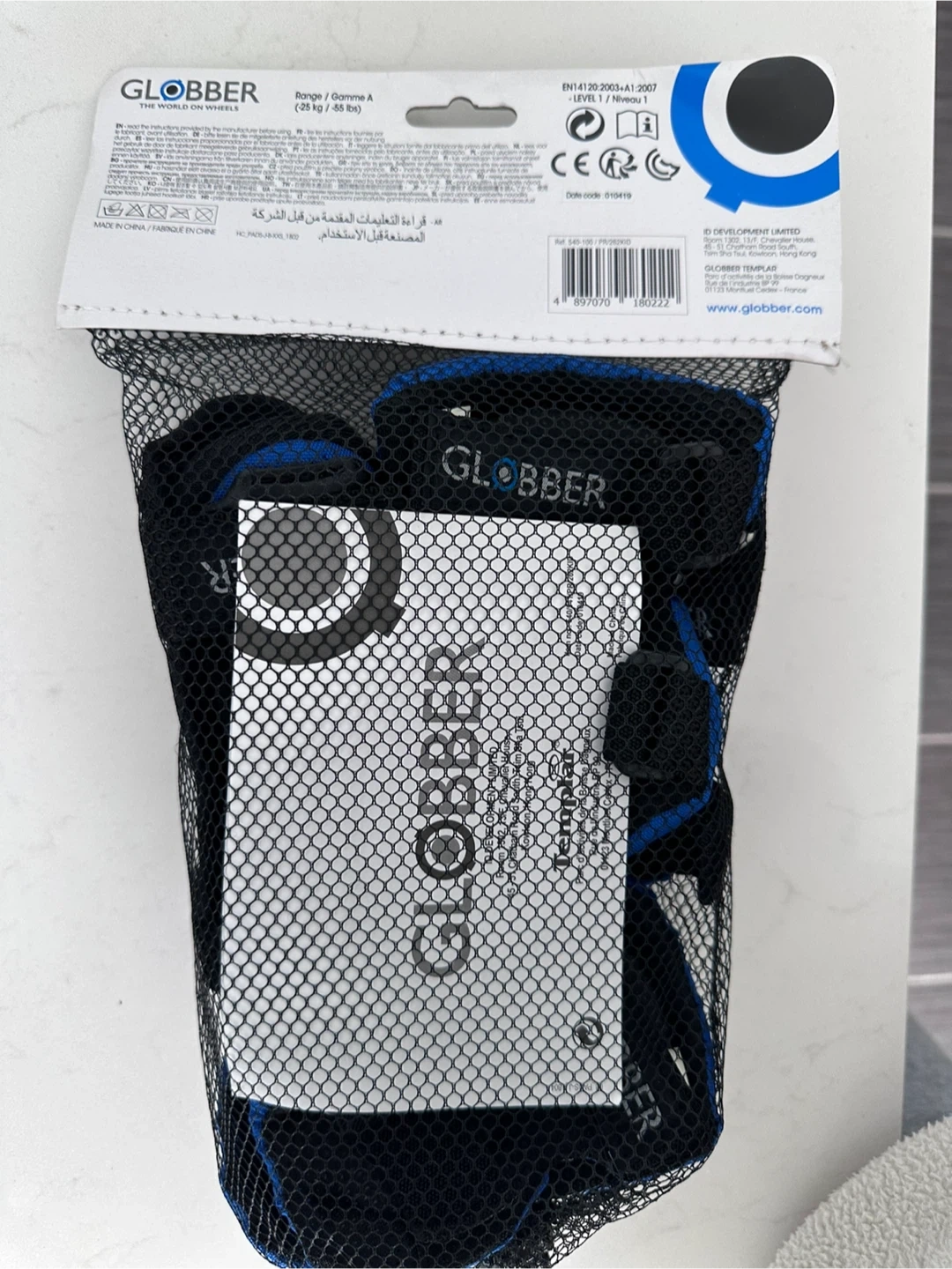 Brand new kids Globber set of 3 protections, including knee pads, wrist guards, and elbow pads. This set is size XXS, suitable for ages 3-7 years (25 kg / 55 lbs). It comes in a mesh bag for easy storage.
