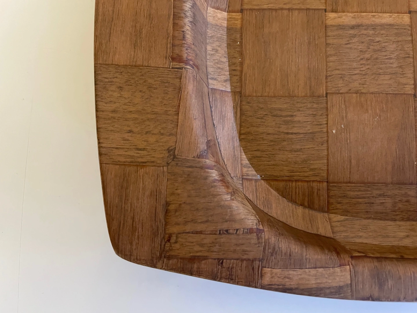 This versatile tray is the perfect way to infuse your space with retro sophistication. Use it to beautifully display your favorite decorative items, serve drinks and appetizers, or style it as the centerpiece of a vintage-inspired vignette. The natural walnut finish and weaved wood design lend an irresistible mid-century charm that will instantly elevate any room.