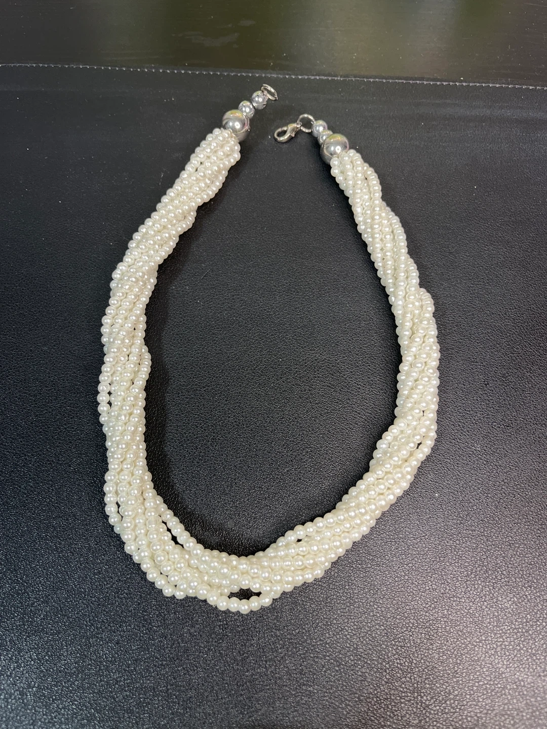 🥕Multi-strand faux pearl necklace with silver tone clasp