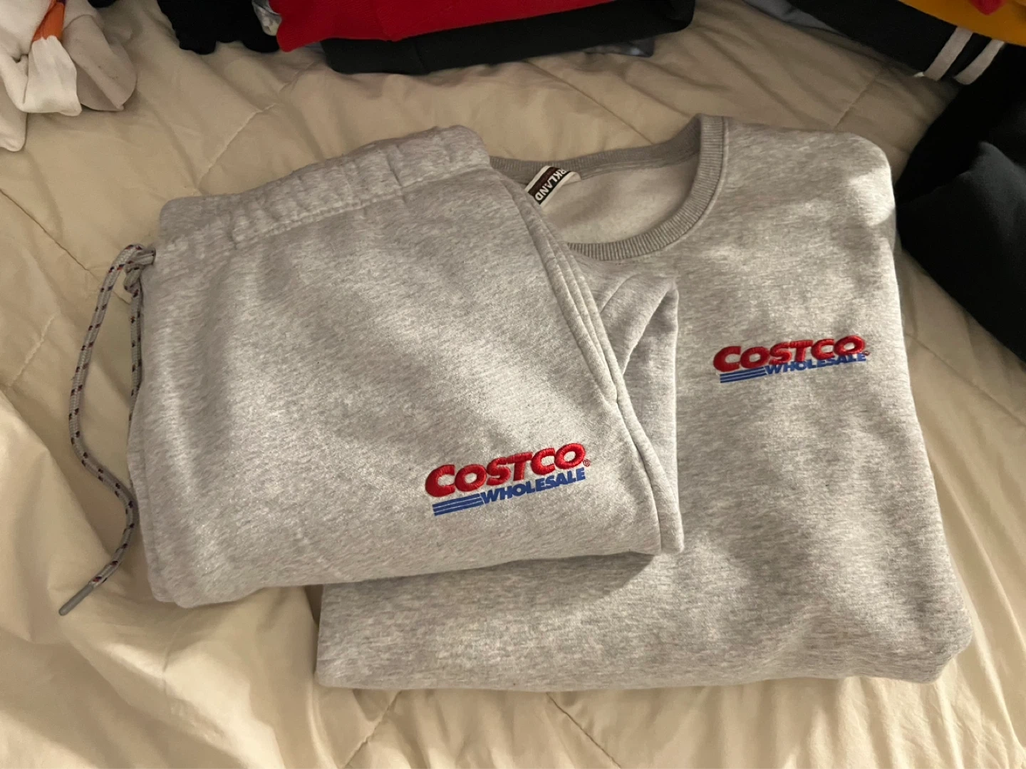 Grey Kirkland Signature crewneck sweatshirt and sweatpants. (The sweatpants have had more wear and signs of wear then top) Size XL - in men’s ! And XXL in women’s !
