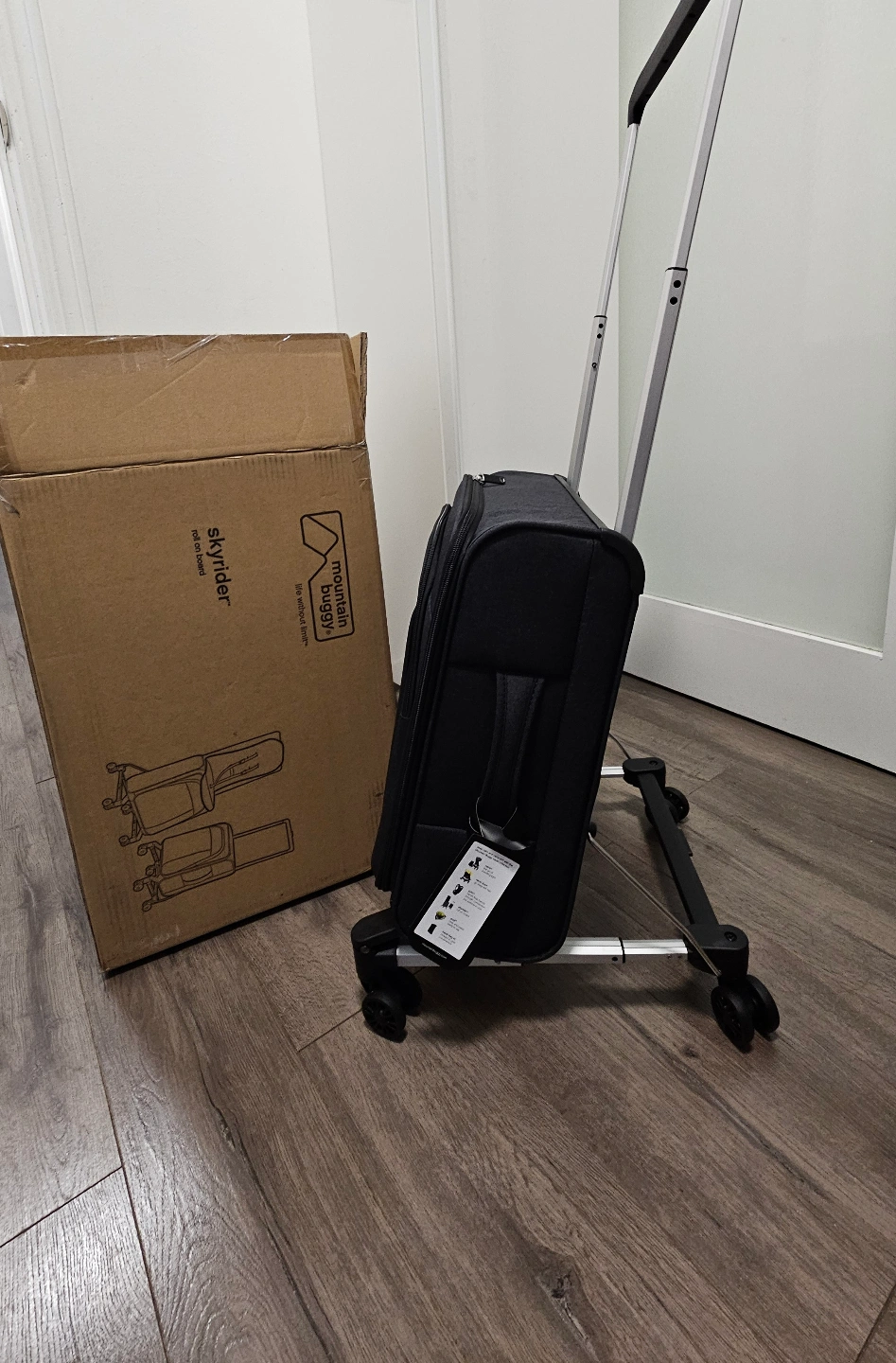 I am selling a Mountain Buggy Skyrider, a unique travel accessory that transforms from a rolling suitcase into a ride-on suitcase for toddlers. This innovative product is designed to make traveling with young children easier and more enjoyable. It is in used but like new condition, ready for its next adventure.