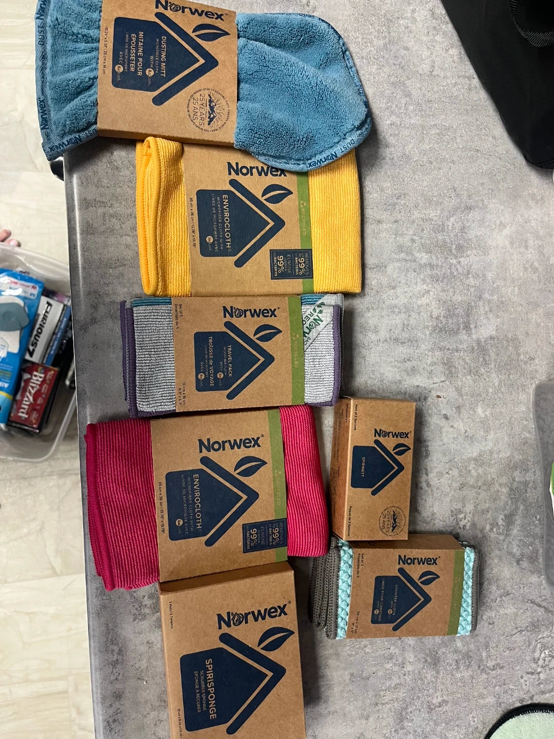 This Norwex travel pack includes 5 microfiber cloths, each measuring 16 cm x 16 cm. They're designed with BacLock technology. These cloths are great for on-the-go cleaning.Norwex Cleaning Products All new ,not a former consultant just bought too much.