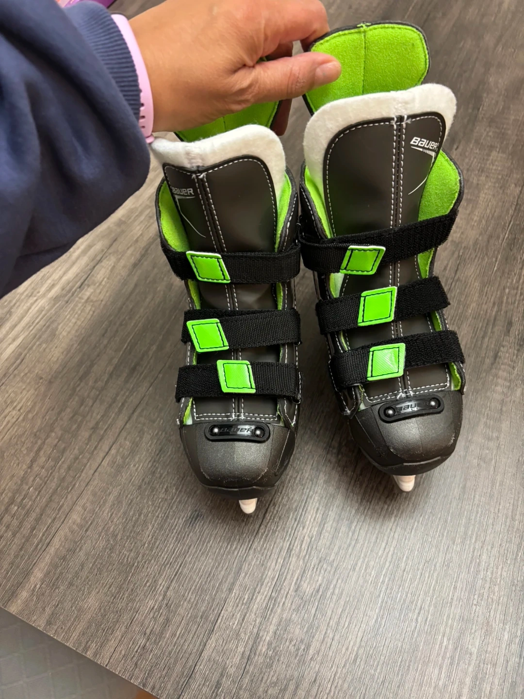 These Bauer ice skates are designed for youth players. They feature a supportive boot with adjustable straps for a secure fit. The skates have comfortable lining for warmth on the ice. They're great for learning to skate or for recreational ice time!