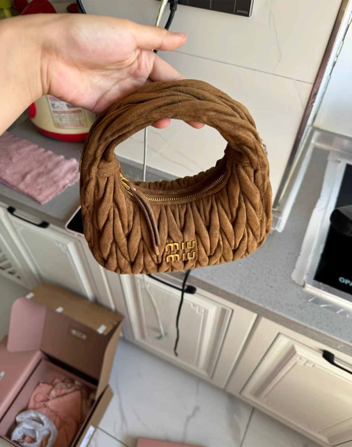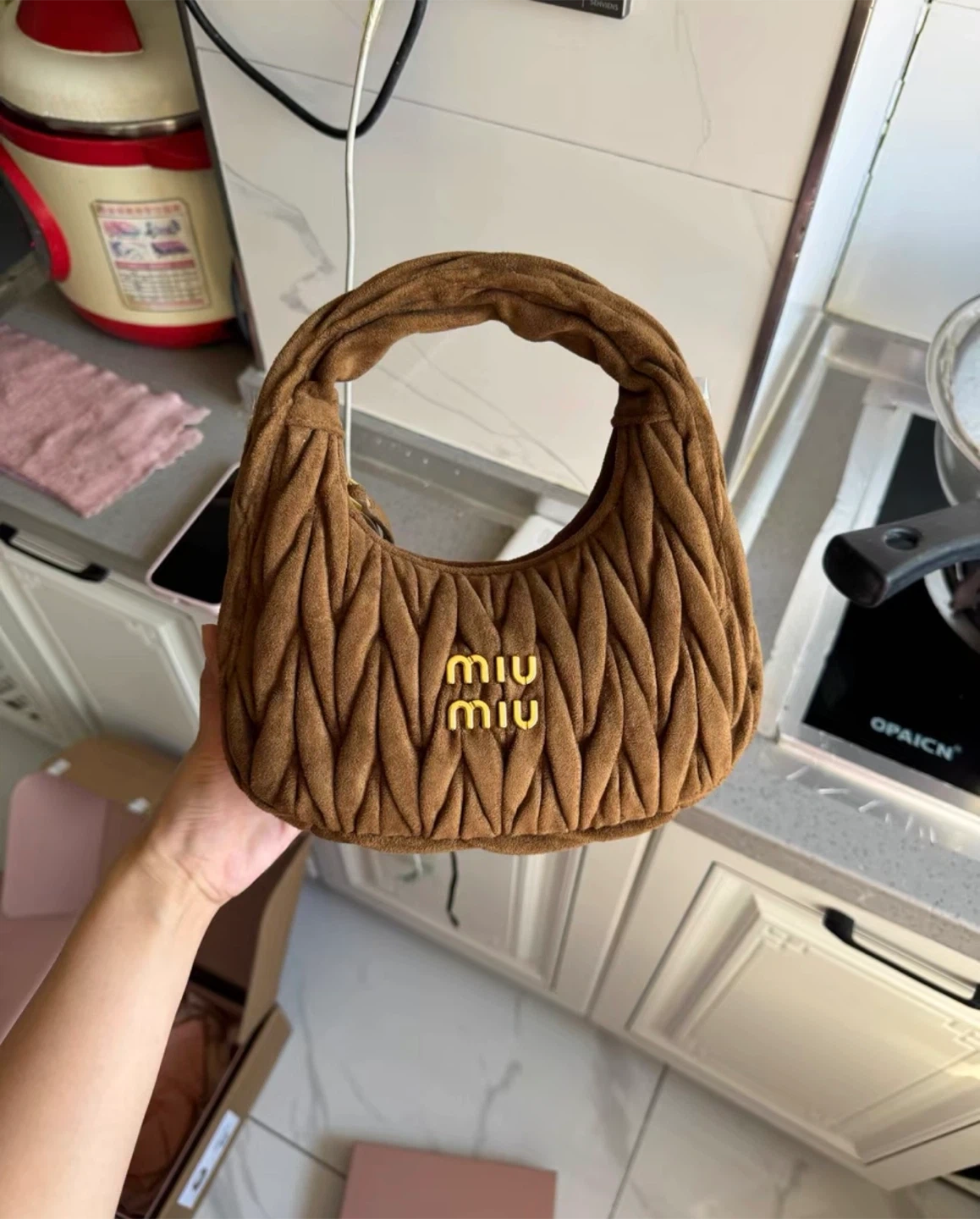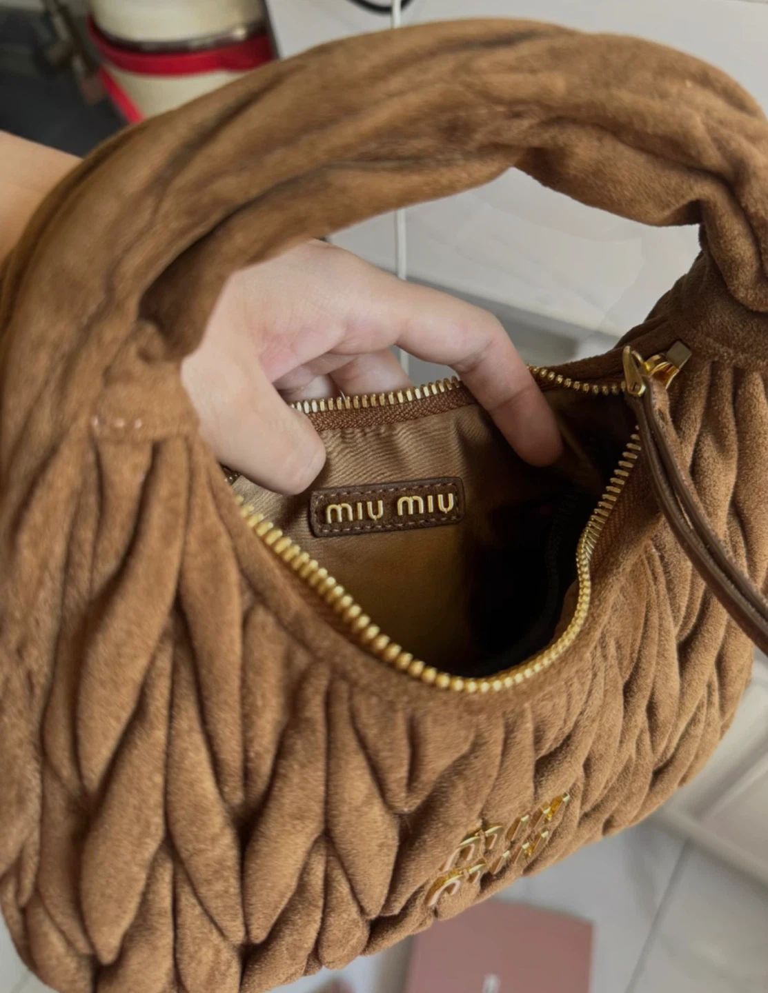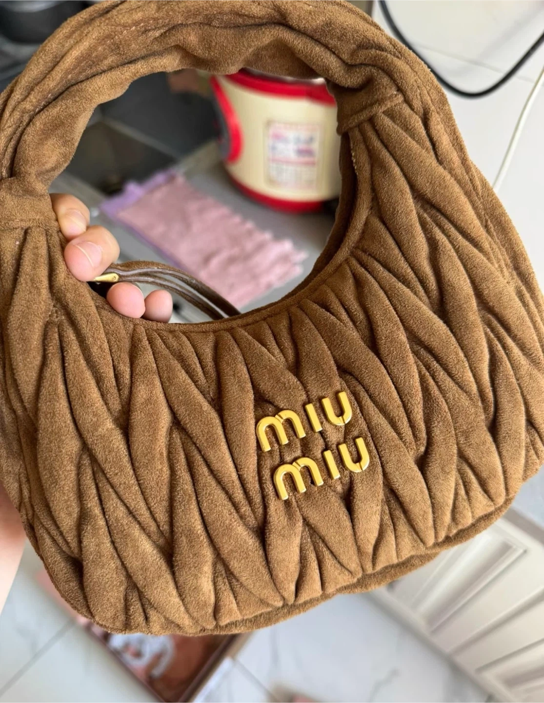 Miu Miu Matelassé Hobo Bag - Brown Suede