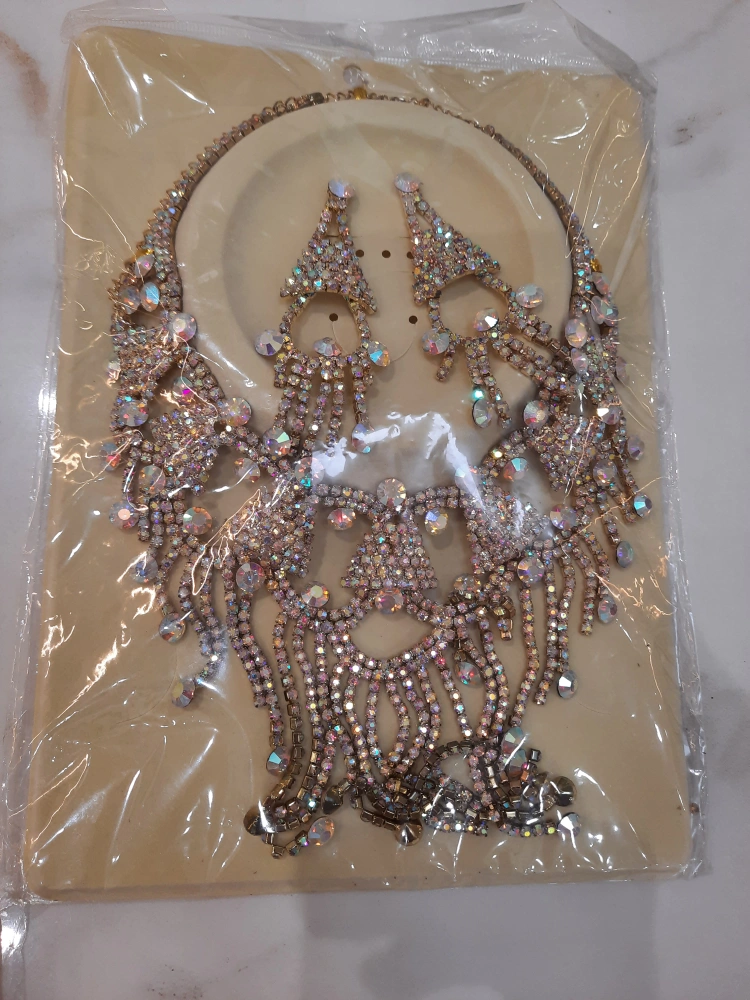 10Brand new necklace and earring set, still in its original packaging! The set features a beautiful design with shimmering stones, perfect for adding a touch of elegance to any outfit