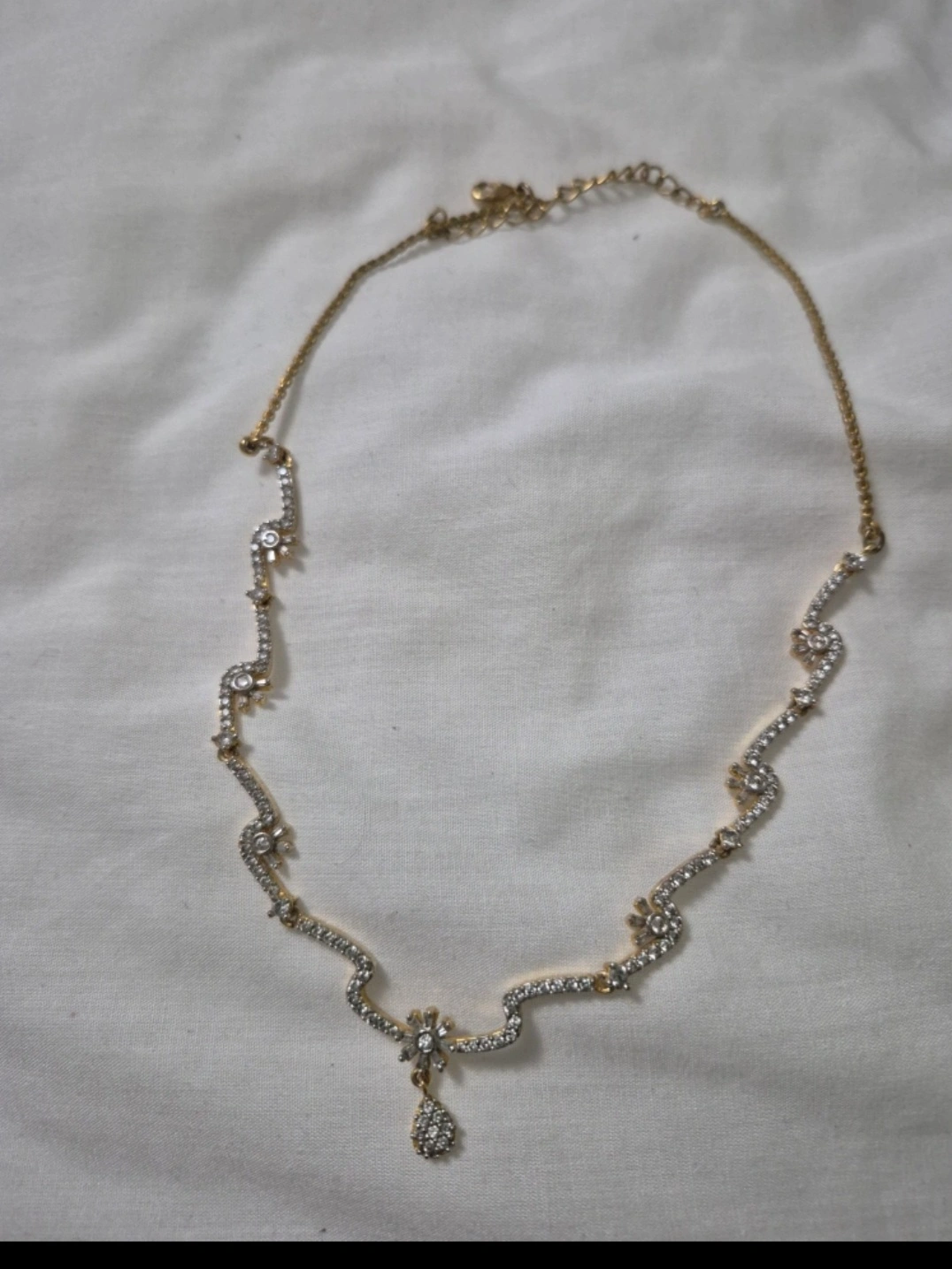 18Selling a necklace with clear stones. It's in great condition and adds a touch of sparkle to any outfit!