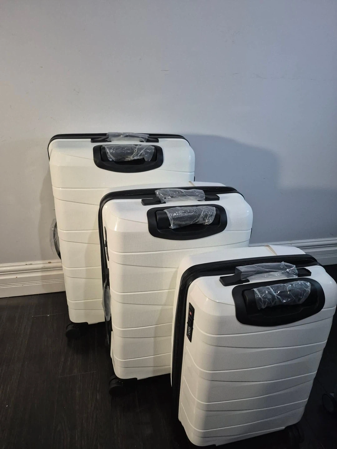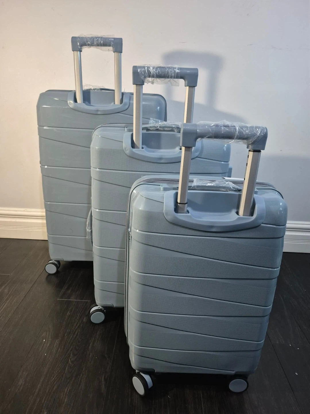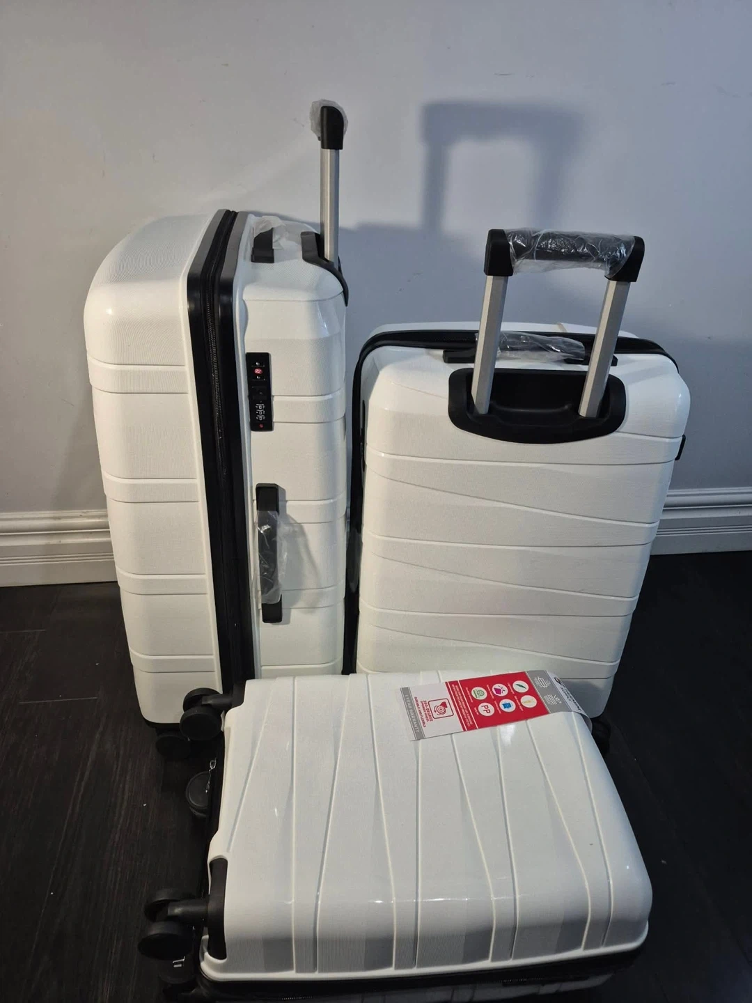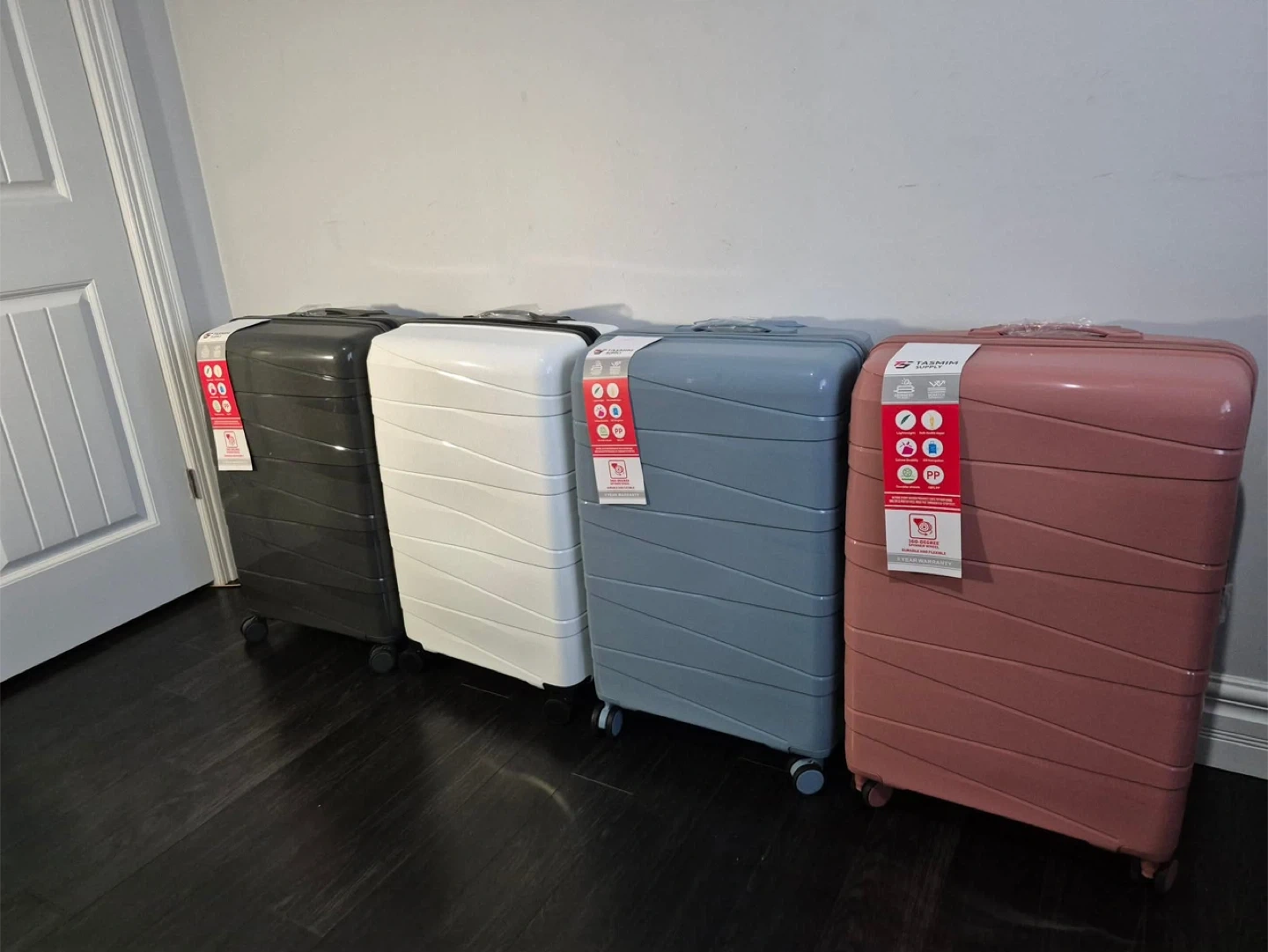 This is a 3-piece luggage set from Tasmim Supply. It's made of durable PP material. The suitcases are lightweight and water-resistant. They're perfect for any travel needs!