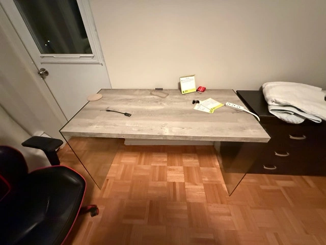 Purchased this desk from Costco a few years ago (still in good shape). I’m moving out so need to sell everything asap. Comes with free chair (chair handles is chewed by my dog but the chair itself is pretty comfortable). Open to offers. Must pickup