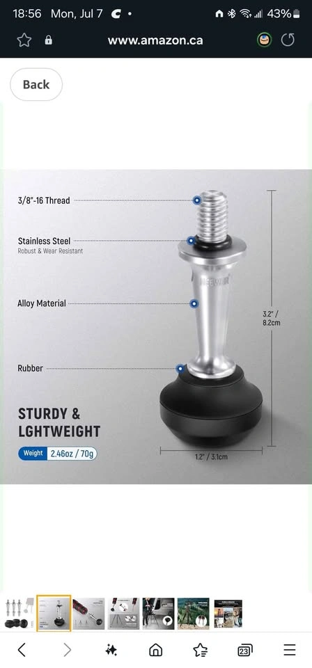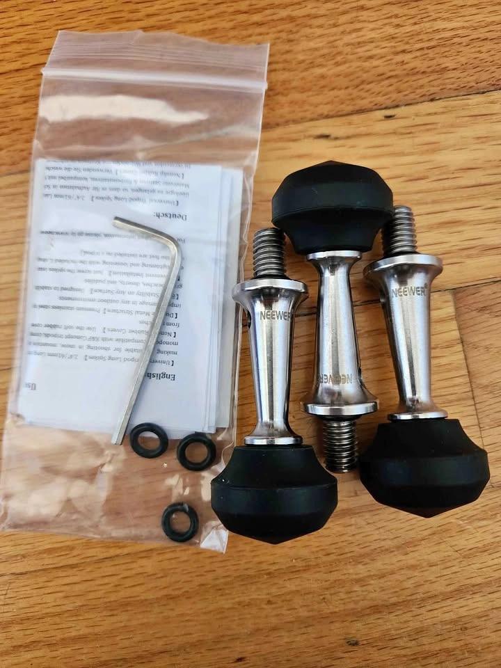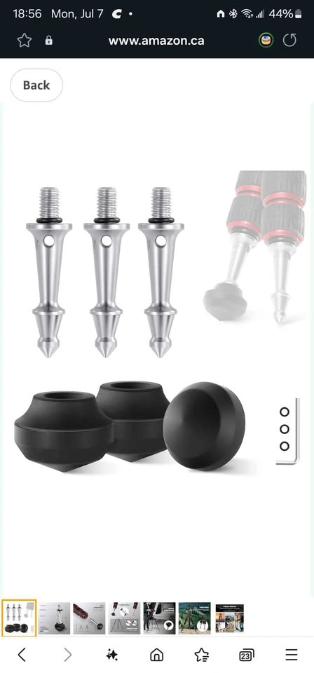 Brand: NEEWER Colour: Black Compatible devices: Tripods Special feature: Universal long spikes, Rubberized antislip feet covers Material: Stainless Steel Item weight: 7.41 Ounces 【Universal Tripod Long Spikes】 2.4"/61mm Long spiked feet allow the tripod legs to reach deeper into softer geology, making it suitable for shooting in snow, mountain and sand, etc. Universally compatible with tripods & monopods, compatible with K&F Concept tripods, compatible with Kingjoy tripods and more. Note: For 3/8" threaded holes only 【Nonslip Rubber Covers】 Use the soft rubber covers to avoid sliding on slippery surfaces and protect wooden floors from scratches 【Durable Metal Structure】 Premium stainless steel spikes are lightweight and rustproof, resistant to corrosion, heat, and impact damage in any outdoor environments 【Extra Stability on Any Surface】 Designed to stabilize your tripod on soft, wet, and uneven surfaces, such as rocks, mud, grass, beaches, deserts, and puddles 【Convenient Installation】 Just screw the spikes into the bottom of the tripod via the 3/8" threads. A hole is designed for easy tightening and loosening with the included L shaped hex key. (Note: The silicone rubber cover can be easily removed after the feet are installed on a tripod.)