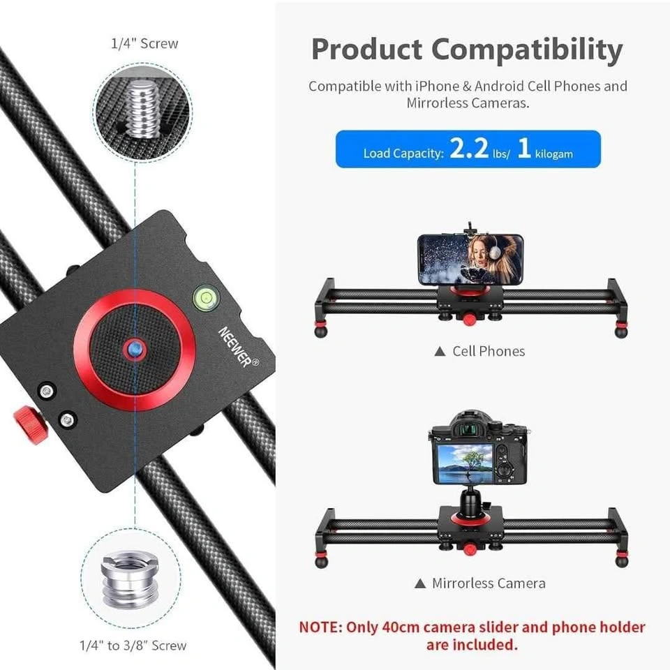 15Neewer Camera Slider Carbon Fiber Dolly Rail, 16''/40cm with 4 Bearings, Compatible with 13 13 Pro 13 Pro Max 13 Mini & Android Cell Phones and Mirrorless Cameras, Load up to 2.2lbs/1kg Pick up Garden city area