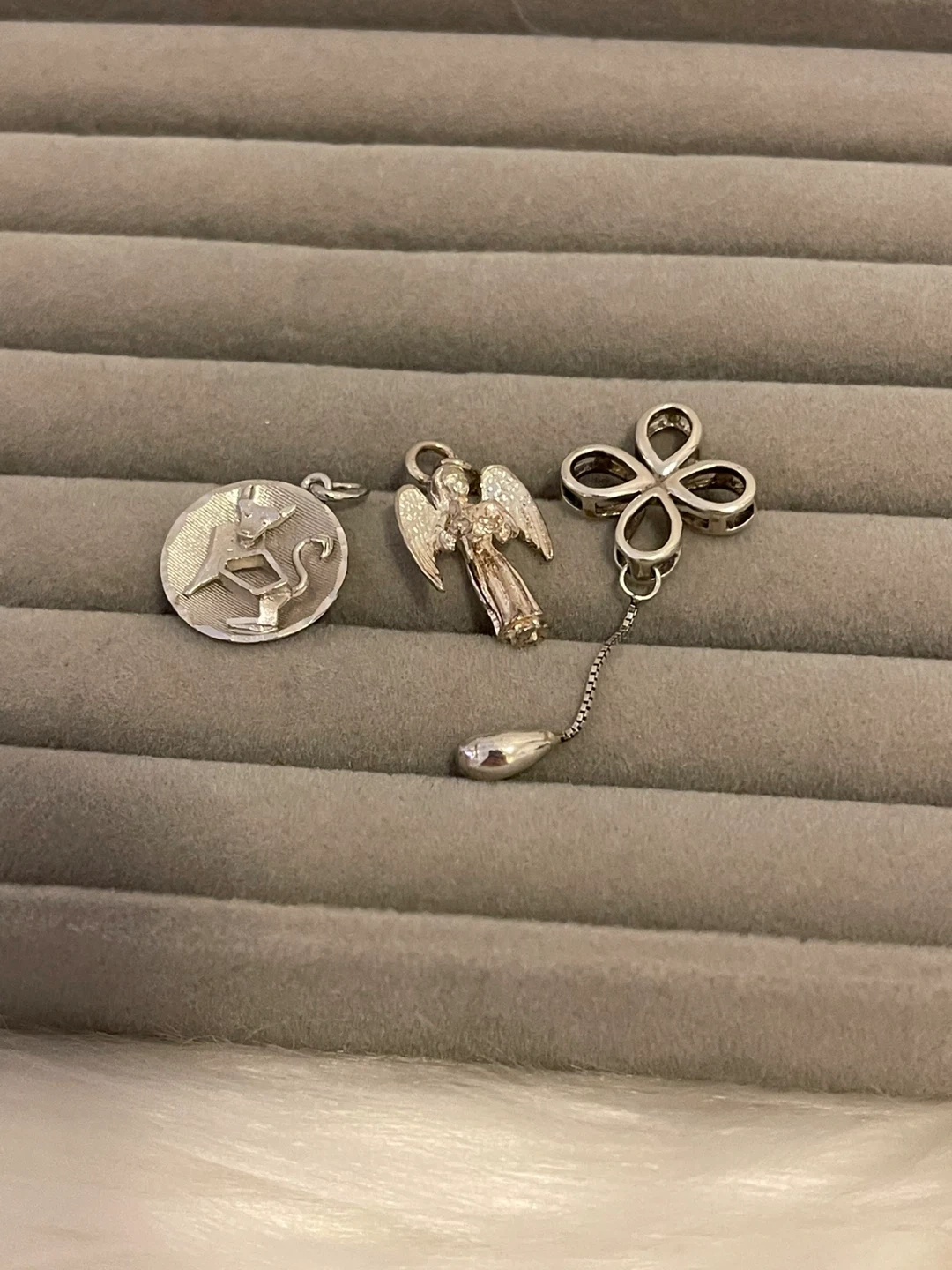 Three Sterling Silver Charms: Angel, Clover, and Horse