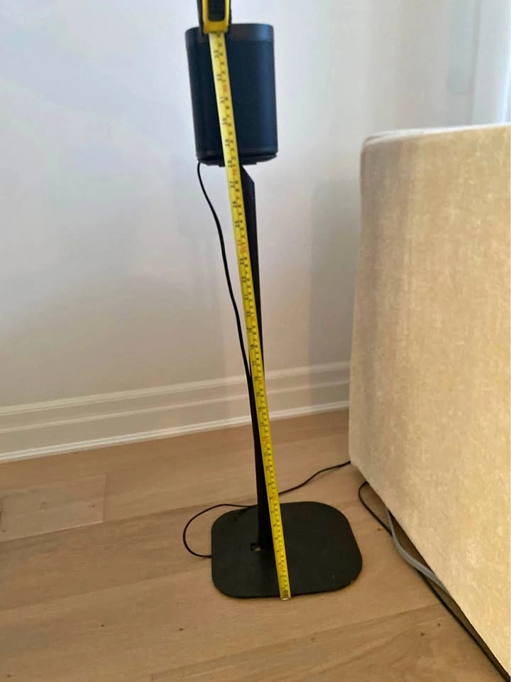 10Black Sonos speaker stand (single). Compatible with Sonos One, One SL, and Play:1. Gently used and in good condition. Helps elevate your speaker for better sound and includes built-in cable management for a clean look. Perfect for home audio setups.