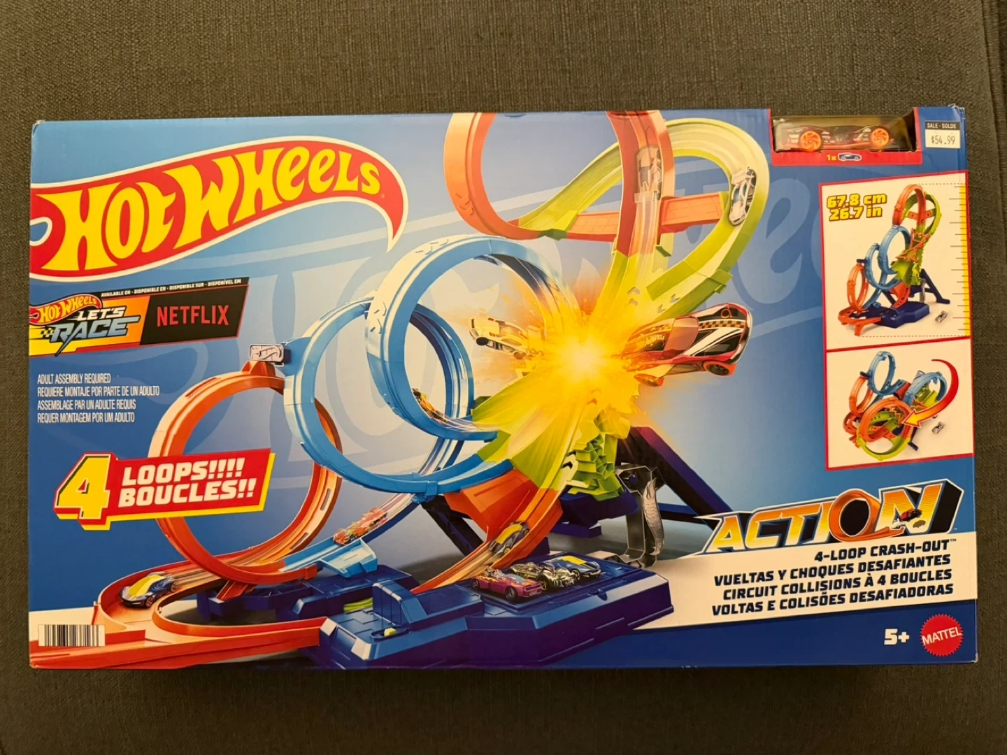 Selling a Hot Wheels Action 4-Loop Crash-Out set! It's perfect for kids aged 5+. The box includes one vehicle and the components to assemble the 4-loop circuit. Get ready for some crash-out action!