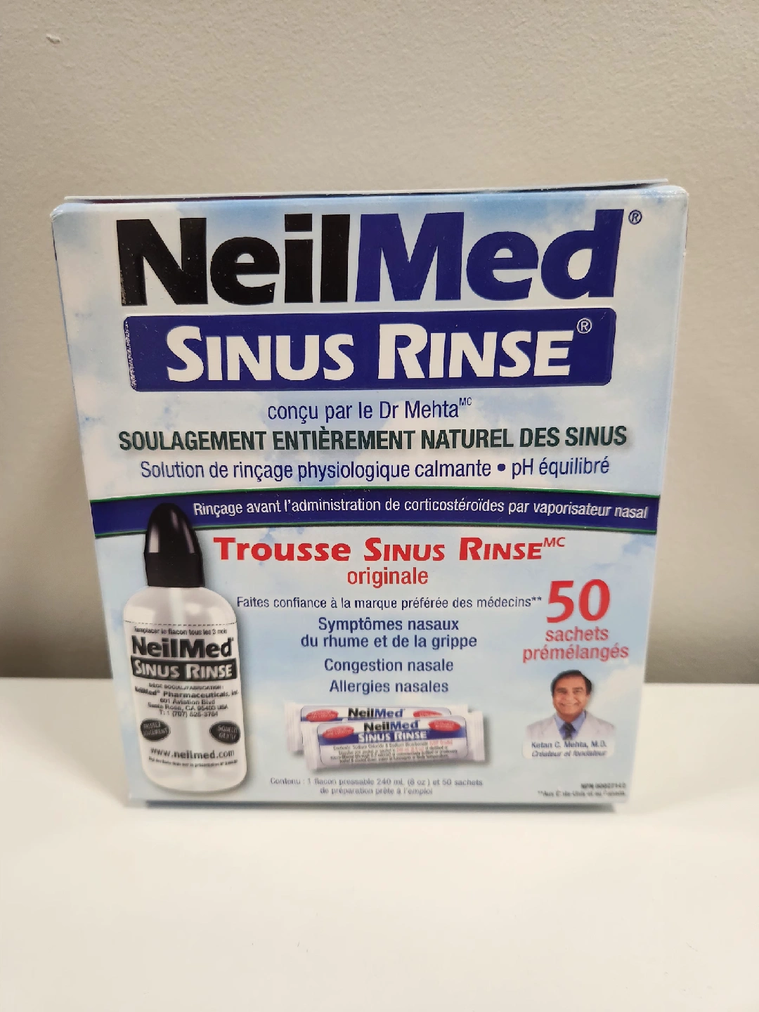 Selling a NeilMed Sinus Rinse kit, complete with 50 pre-mixed sachets! This kit provides natural sinus relief with a pH-balanced solution. It's designed to rinse before administering corticosteroids via nasal spray. Trust the doctor's preferred brand for nasal symptoms related to cold, flu, congestion, and allergies