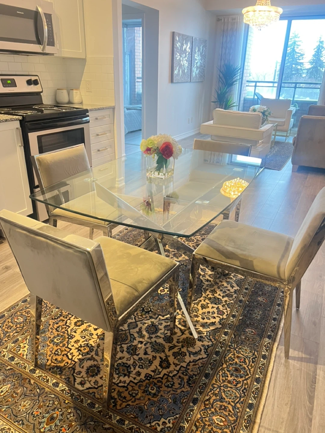 Glass Dining Table with 4 Chairs