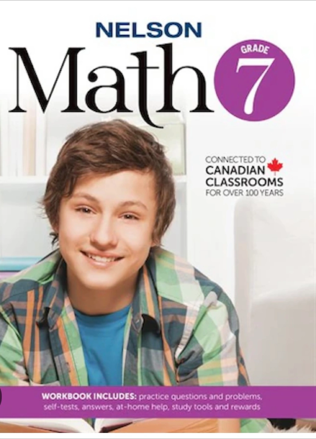 Selling a Nelson Math Grade 7 workbook! It's connected to Canadian classrooms and includes practice questions, problems, self-tests, answers, at-home help, study tools, and rewards