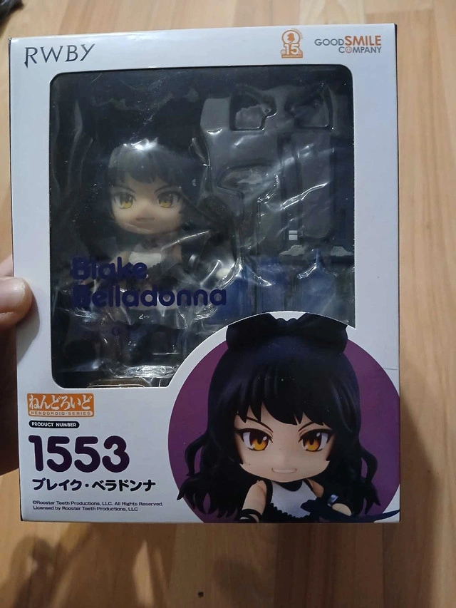 25Nendoroid 1553 Blake Belladonna from RWBY, excellent condition, comes with all original accessories. Here are some of the features: * Articulated, so you can pose her in a variety of ways * Includes 2 face plates for different expressions * Comes with her signature weapon, Gambol Shroud Originally bought it for $110. eBay price: $110-$190