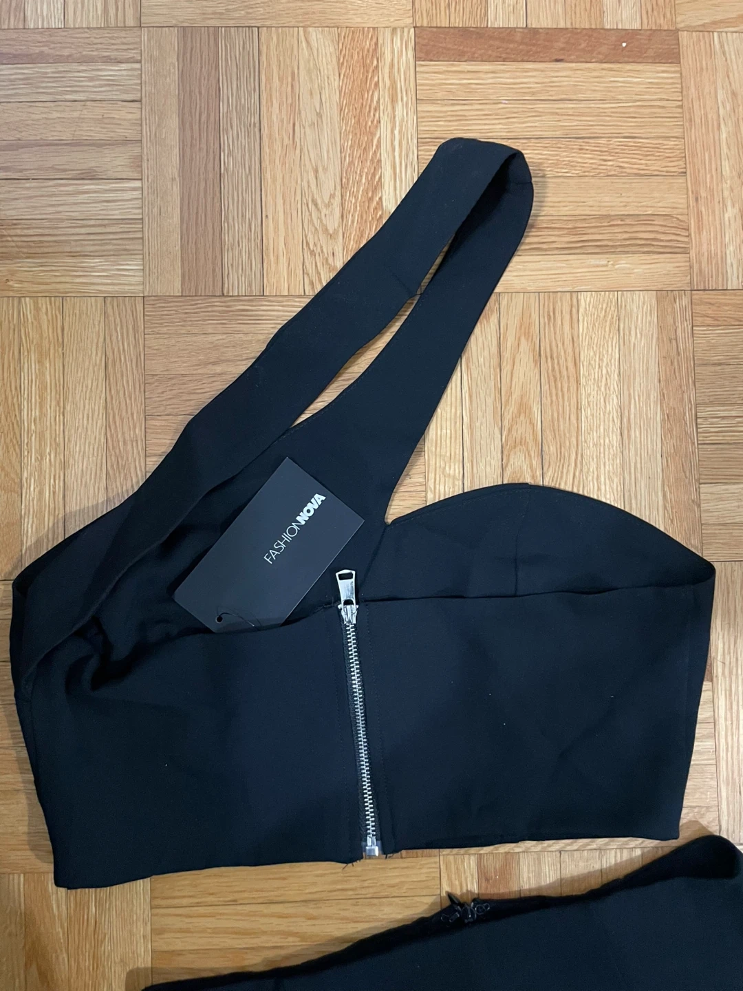Selling a Fashion Nova black one-shoulder set!