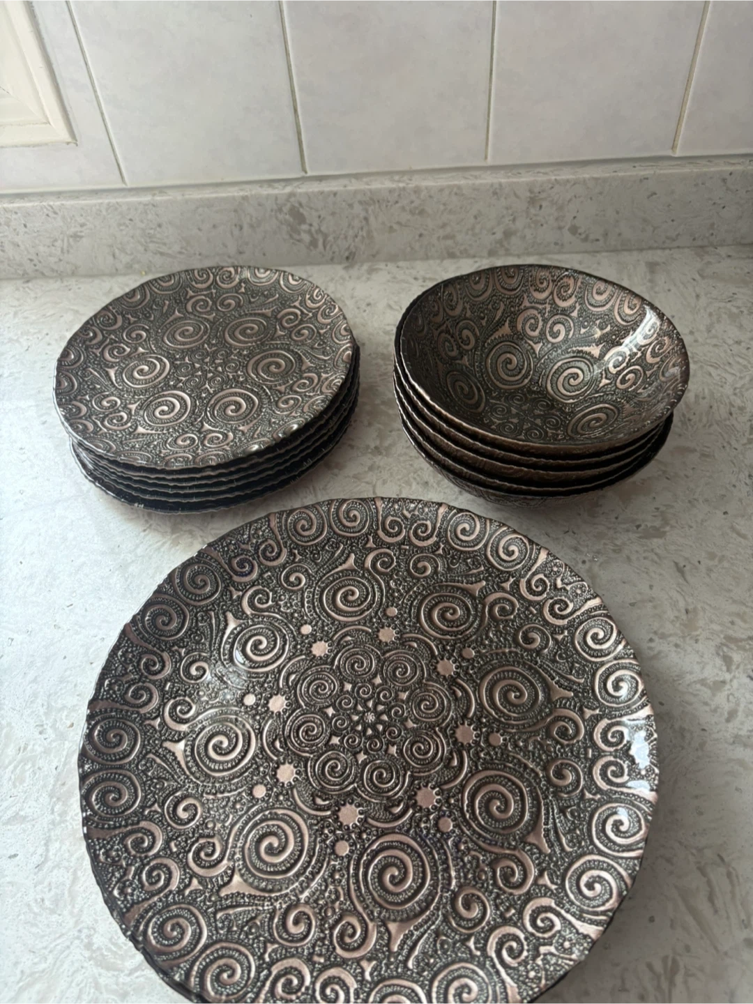 Embossed Decorative Bowls and Plates Set