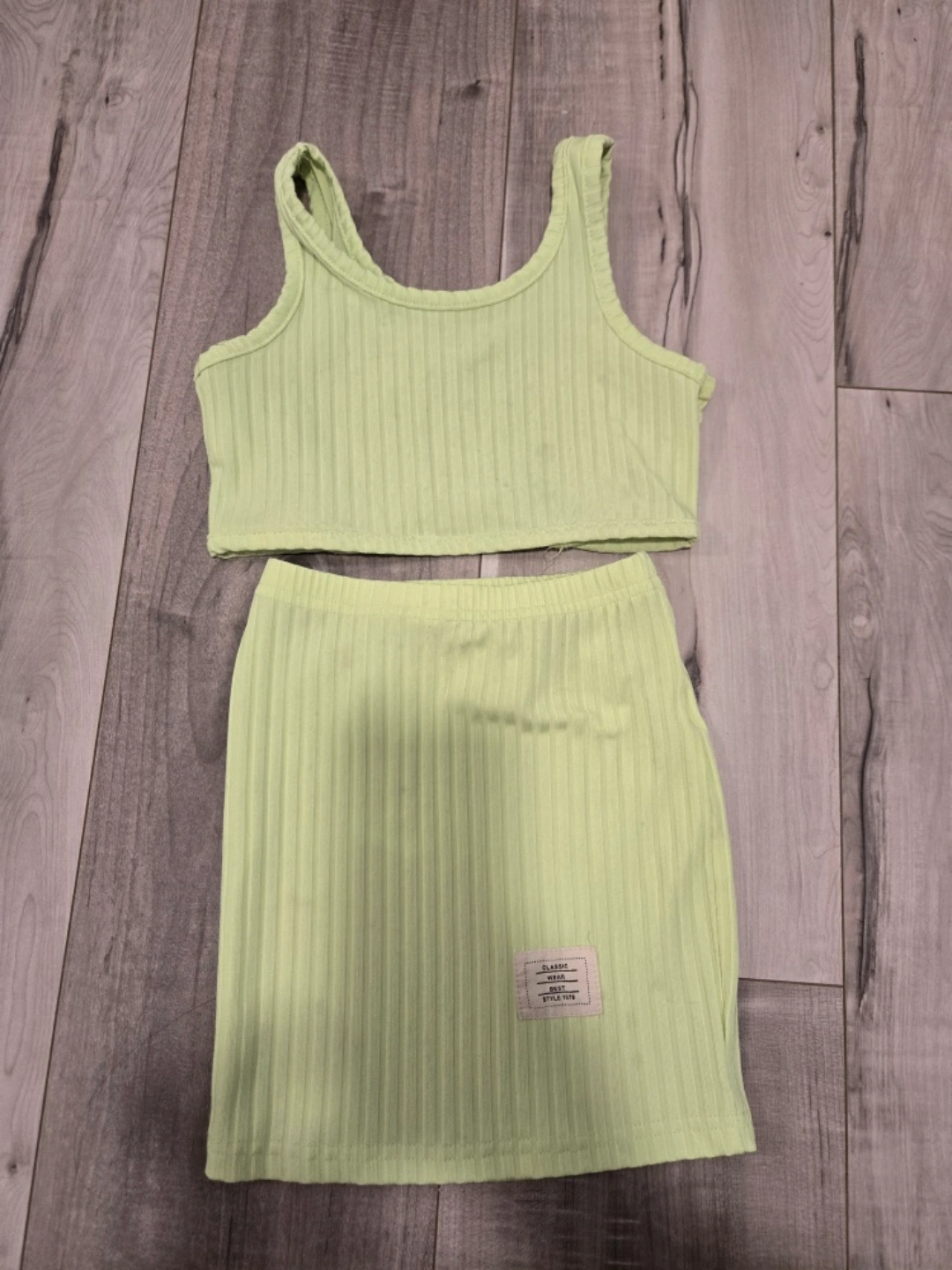 Selling a cute neon green tank top and skirt set! The material is ribbed and stretchy. Perfect for summer! size 4Y