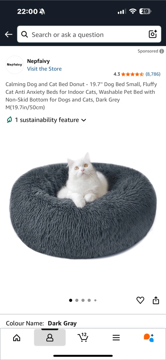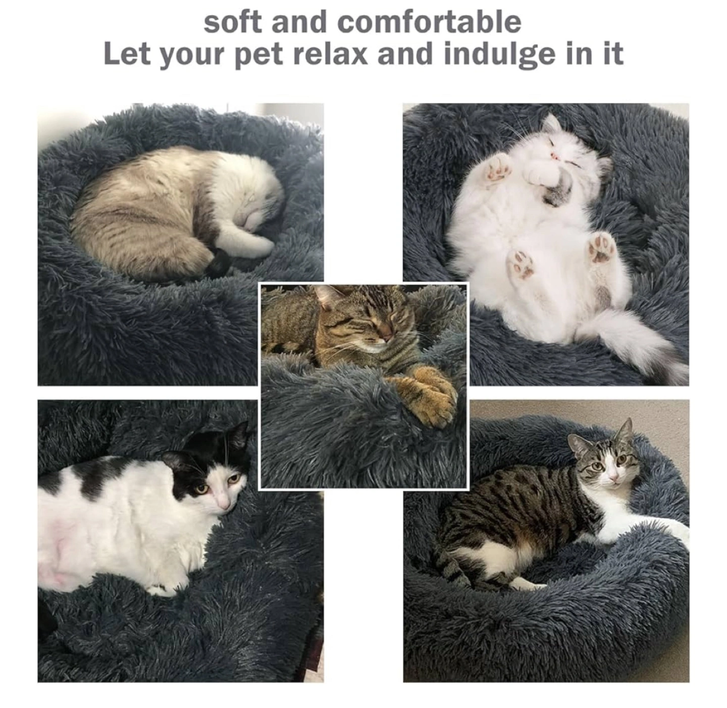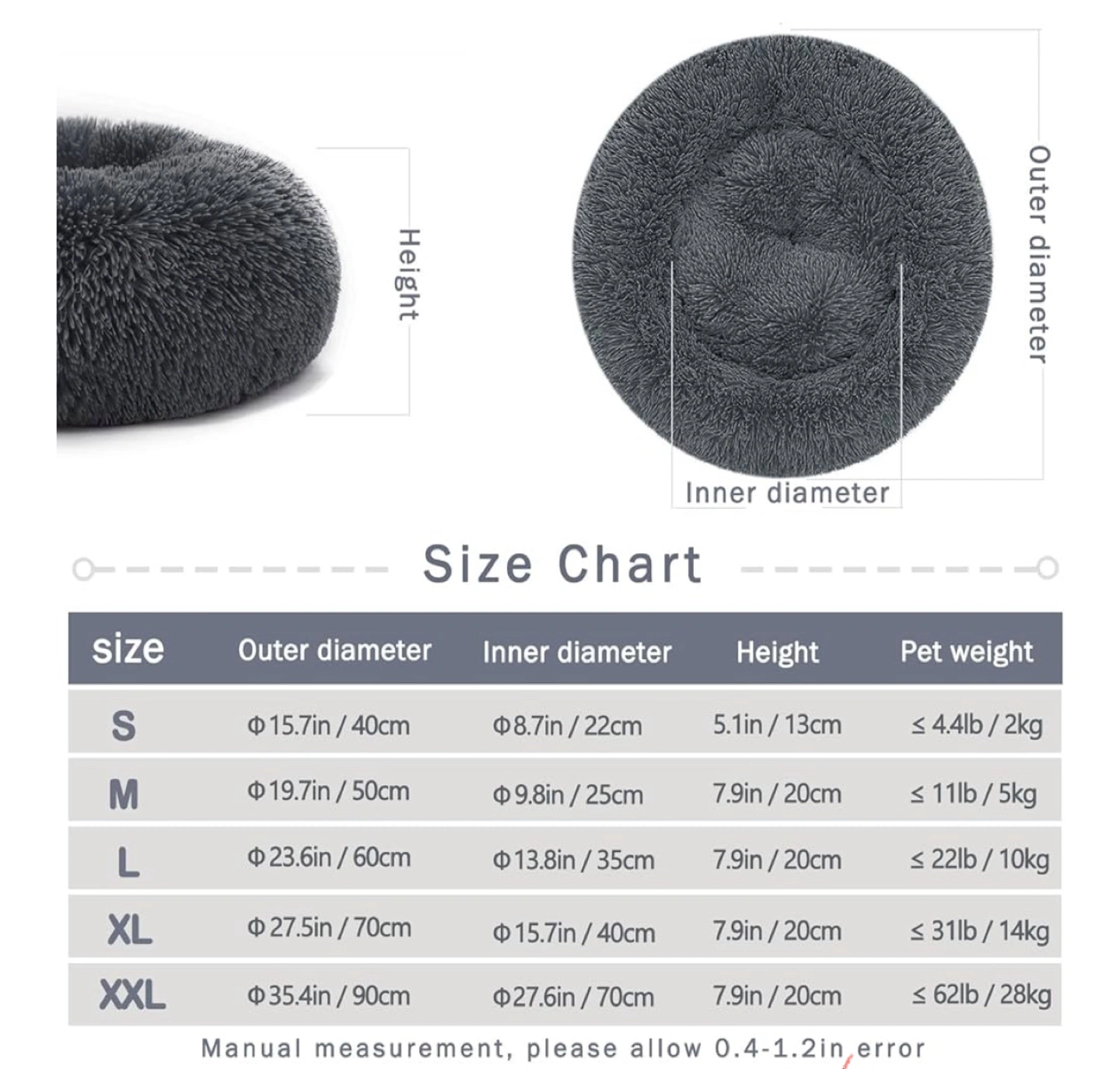 Keep your furry friend cozy with this calming pet bed! It's a Nepfaivy brand bed, perfect for cats or dogs. The bed is dark grey and size M (19.7in / 50cm). It's designed to provide anti-anxiety comfort with a non-skid bottom. Let your pet relax and indulge in it!