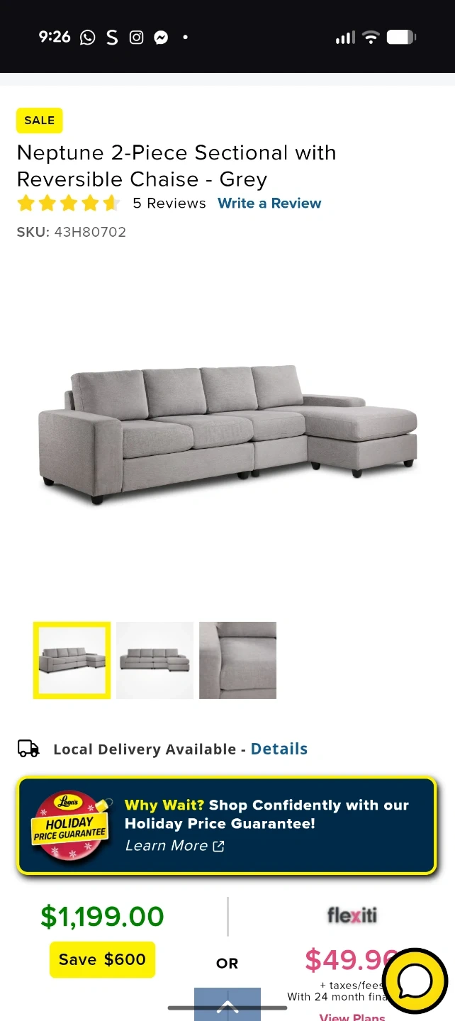 68🛋️ Grey Sectional Sofa – LIKE NEW | Reversible Chaise | $850 OBO ✨ Selling a beautiful grey sectional sofa in excellent, like-new condition. Clean, modern, and extremely comfortable. Perfect for any living room and matches any décor. 📏 Dimensions Width: 116″ (295 cm) Height: 33″ (84 cm) Depth: 59″ (150 cm) ⭐ Features 🔄 Reversible chaise (left or right side) 🧼 Very clean – no stains, no odors 🛋️ Firm cushions with no sagging 🎨 Neutral grey fabric 🏠 From a clean home, no pets 🧺 Includes all pillows 💰 Price $850 OBO (Or Best Offer) 🏷️ New price is approx. $1,199 + tax (Leon’s) 📍 Location SW Calgary 🚚 Pickup Only Buyer must pick up. Sectional comes in 2 pieces, easy to move.