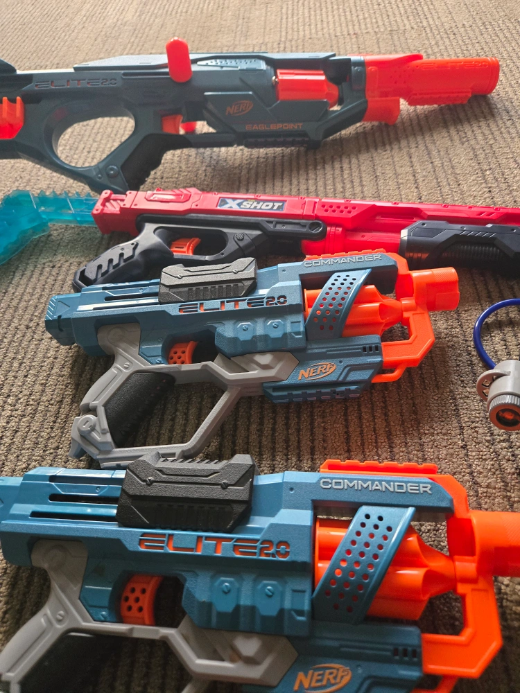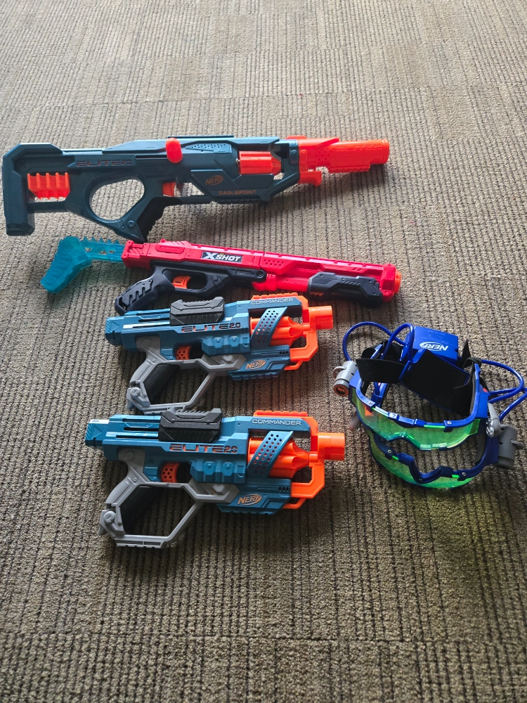 My sons are selling a bundle of Nerf blasters! Includes two Nerf Elite 2.0 Commander blasters, a Nerf Eaglepoint, and an X-Shot blaster. Great for some backyard fun!