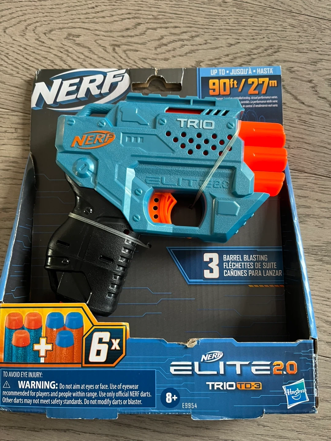 75Selling a brand new Nerf Elite 2.0 Trio TD-3 blaster! It's still in the box and ready for some action. Comes with 3 darts and has barrel blasting for some fun play. Recommended for ages 8+