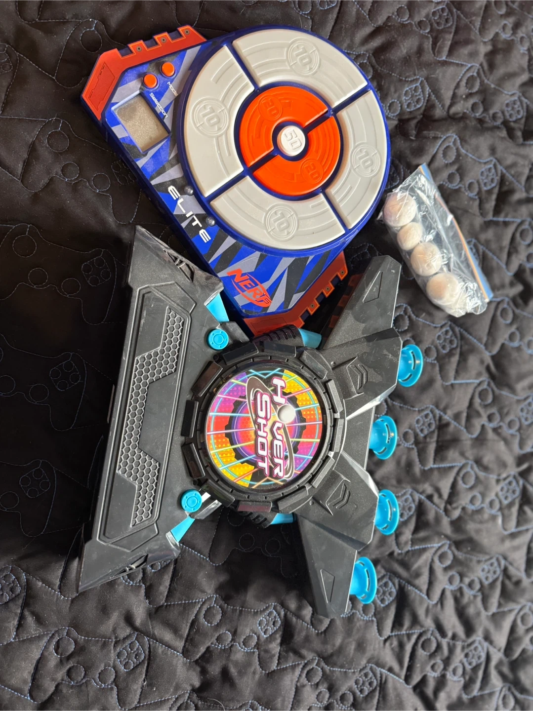 31Selling a Nerf Elite Digital Light Target and Hover Shot game! This set includes both the digital light target and the hover shot target. It also includes some foam balls for the hover shot. Hours of fun!