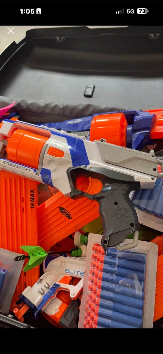 33Selling a lot of Nerf blasters! Includes a Nerf Disruptor, a Strongarm, and a Triad EX-3 Elite. Perfect for some Nerf battles with friends or family. Give me offers! NOT FREE!!!