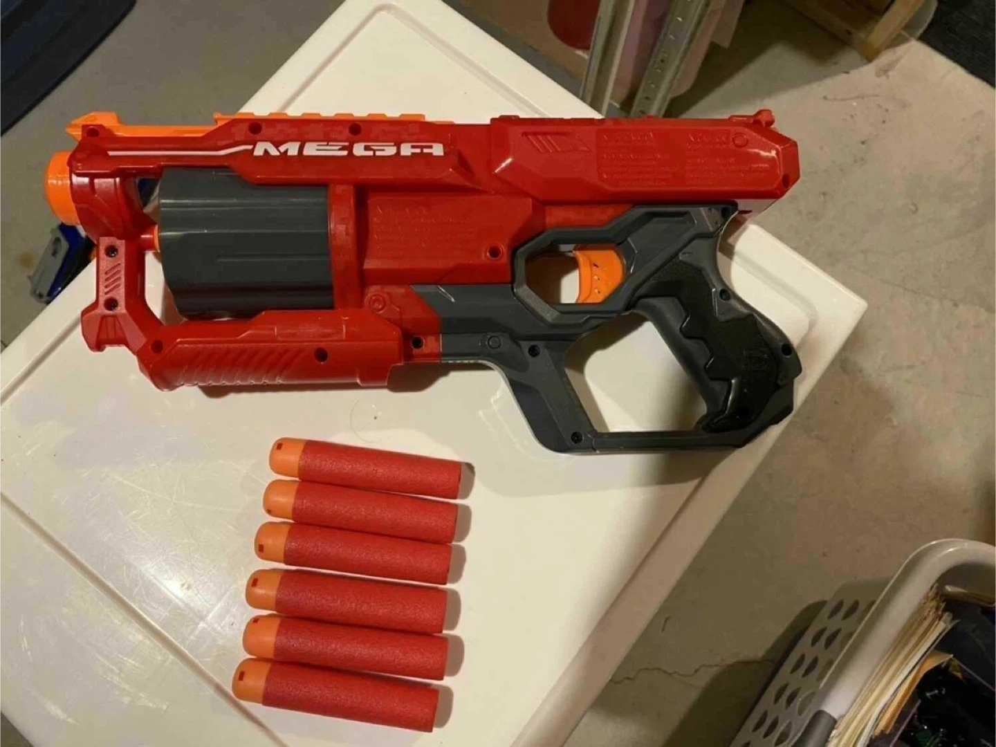 119Selling a red Nerf Mega toy blaster. Comes with a few darts so you can start playing right away! It's in great shape and ready for a new home. Perfect for some outdoor fun or indoor target practice