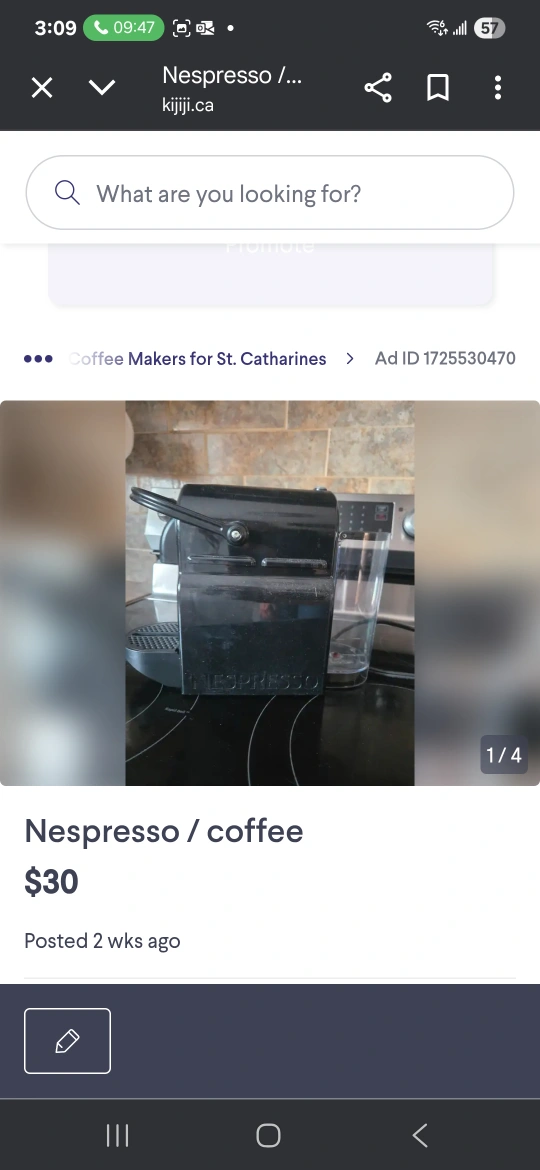 Selling a Nespresso coffee maker! It's in great shape and ready to make delicious coffee. Asking $30.