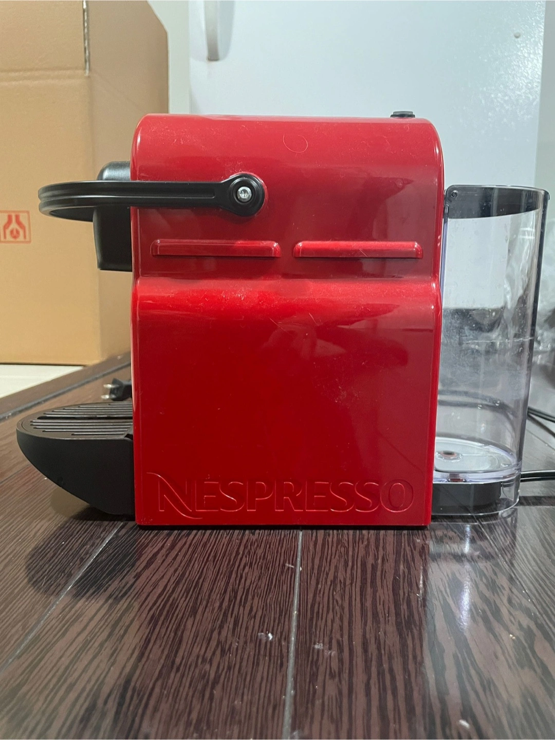 Selling a red Nespresso Inissia espresso machine. It's in great condition and ready to make delicious coffee! Compact and easy to use, it's perfect for small spaces and quick caffeine fixes