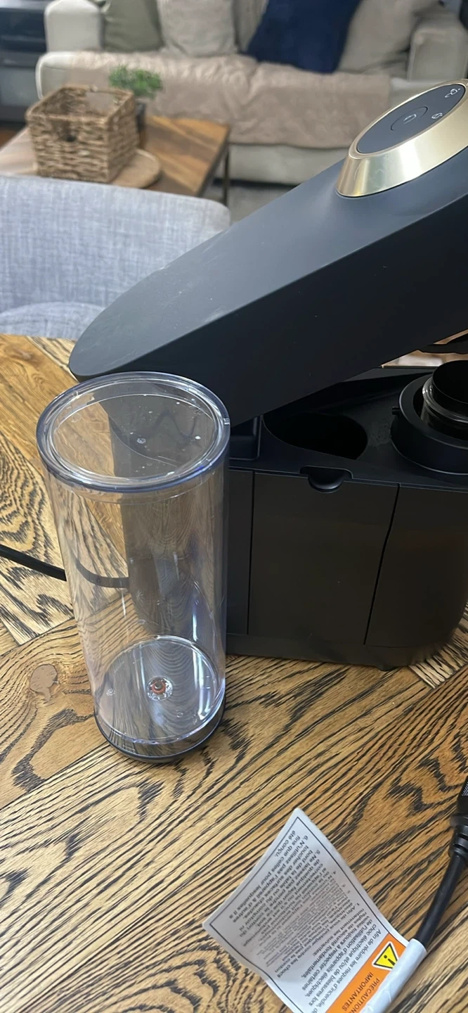 Selling a Nespresso Vertuo Next coffee machine in black with gold accents! It's in great shape and ready to make your favourite coffees. It includes the water tank and used capsule container. Perfect for a quick and easy caffeine fix at home